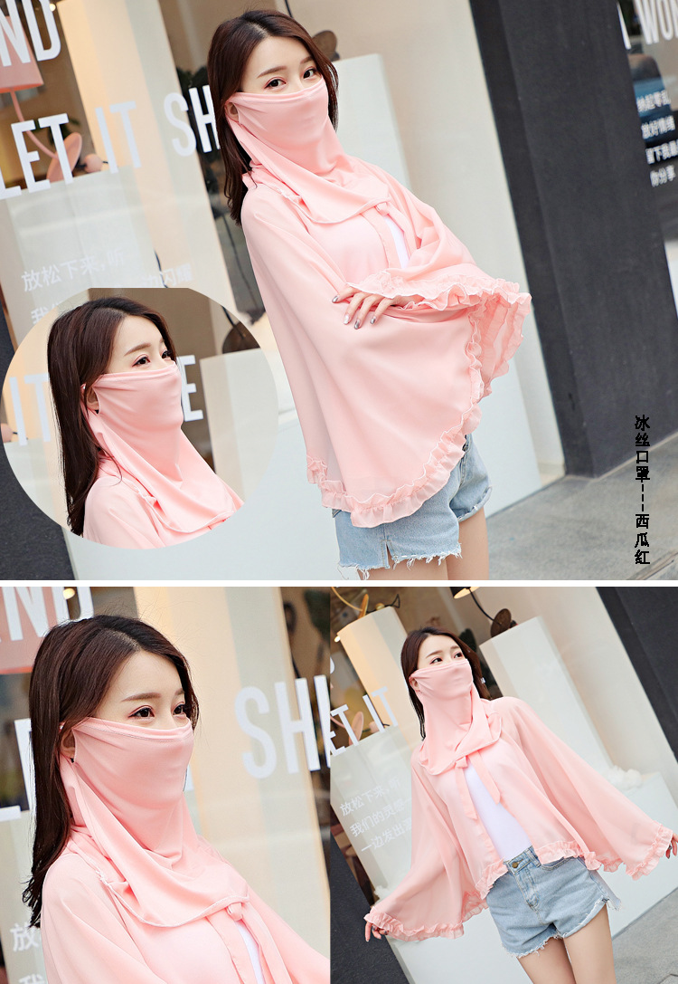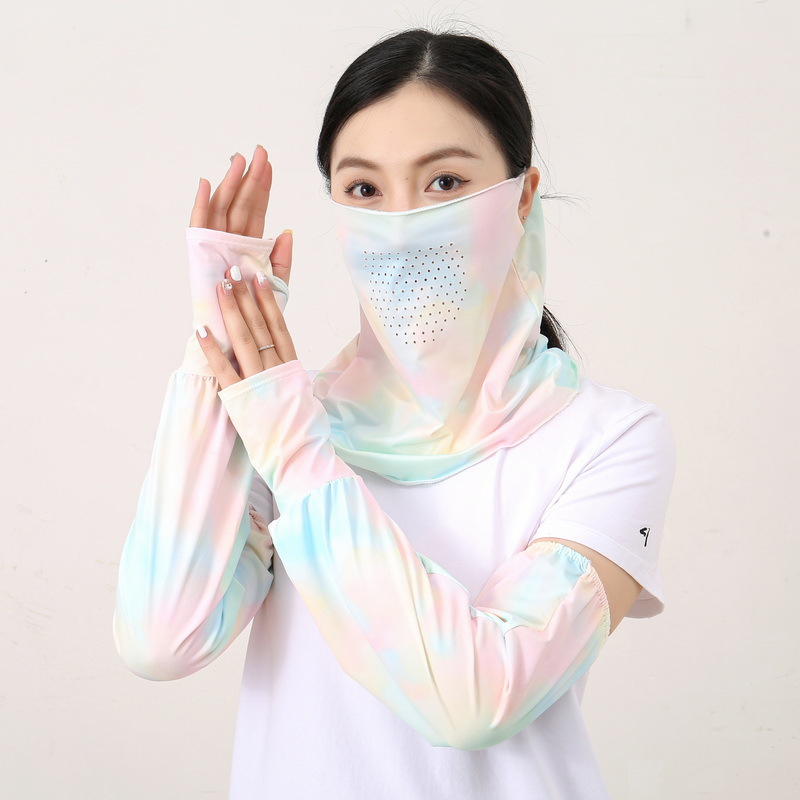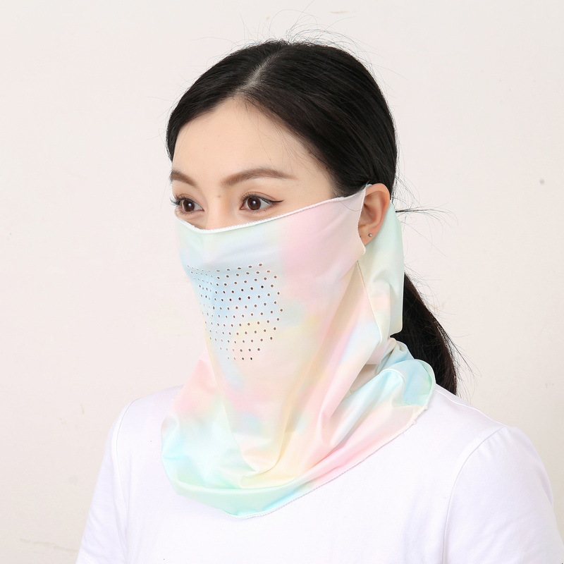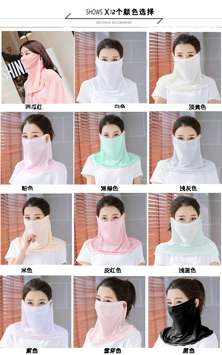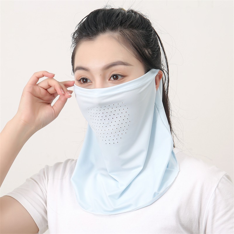 단색 다용도 차양 마스크 여름용 목 보호 자외선 차단 아이스 실크 자외선 차단 마스크 통기성 베일 통기구