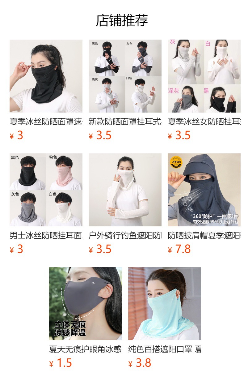 단색 다용도 차양 마스크 여름용 목 보호 자외선 차단 아이스 실크 자외선 차단 마스크 통기성 베일 통기구스토어 가기