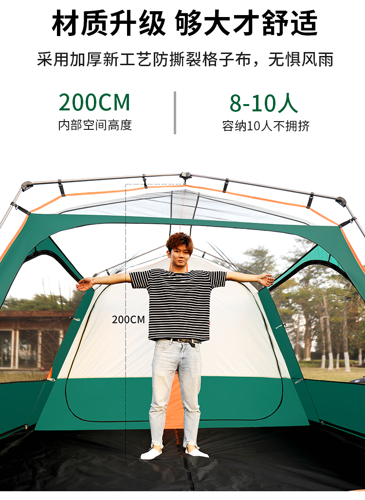텐트 야외 자동 2 베드룸 1 거실 캠핑 더블 레이어 두꺼운 알루미늄 막대 5-8-10 사람들 초대형 폭동 예방
