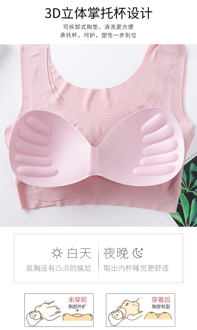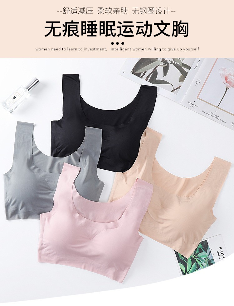 일본의 안전 얼음 실크 원활한 속옷 여성의 아름다움 조끼 스타일 스포츠 수면 원피스 푸시 업 무선 브래지어