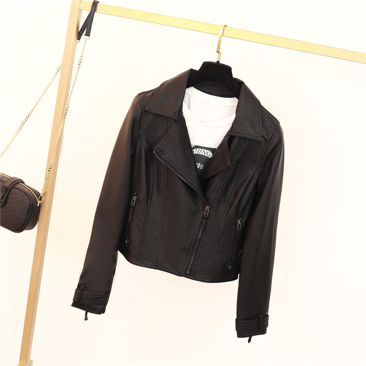 2020 봄 새로운 여성의 짧은 작은 가죽 자켓 라펠 슬림핏 오토바이 자켓 긴 소매 가죽 자켓 작은 자켓스토어 가기
