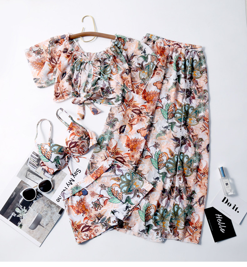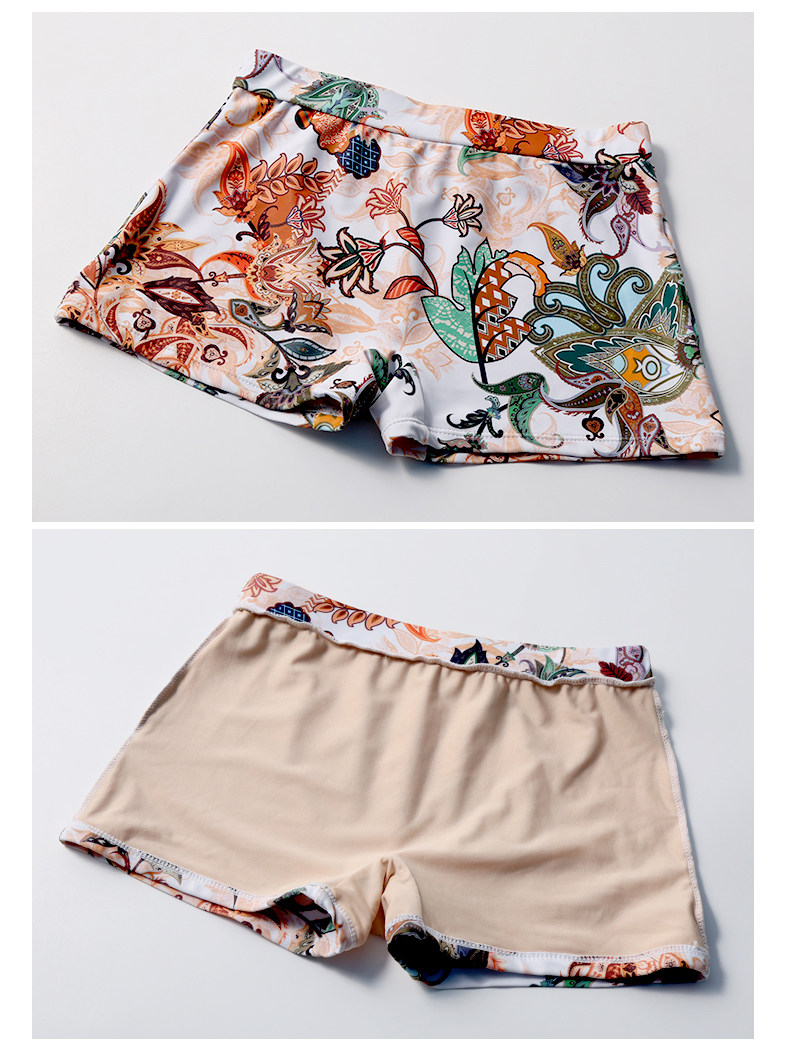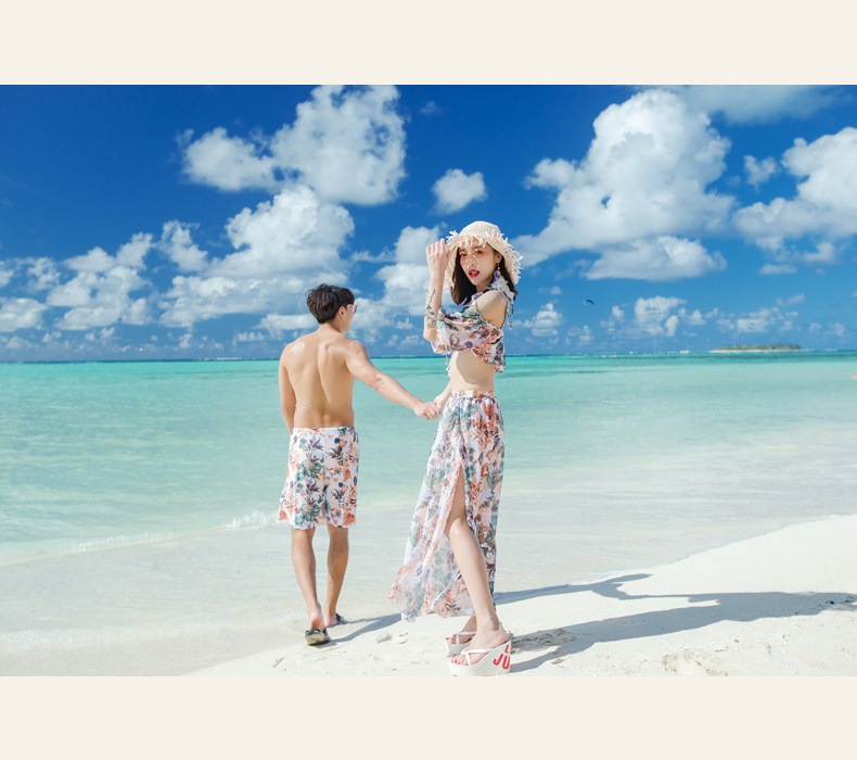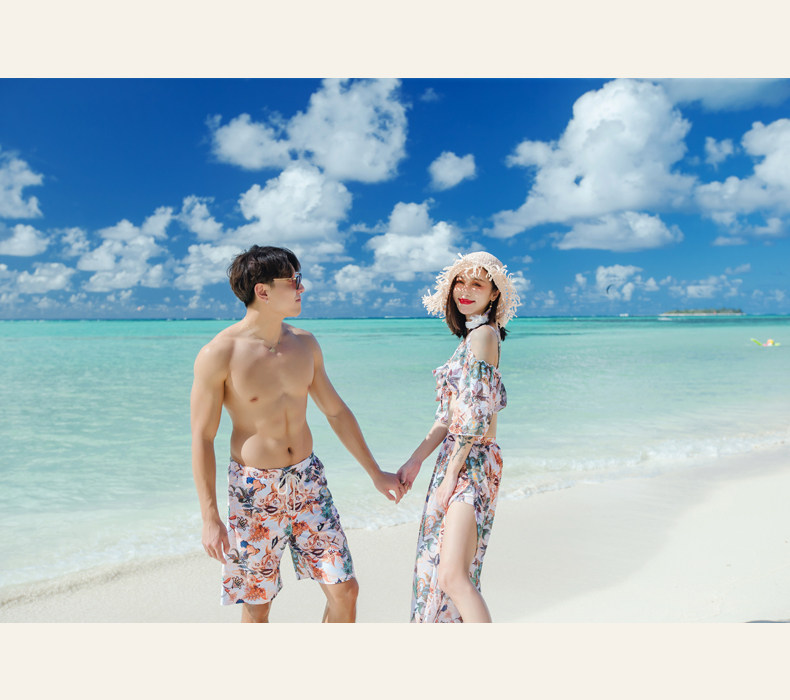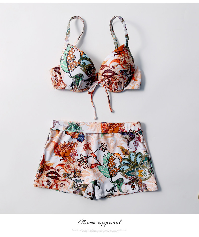 2025 새로운 커플 수영복 언더와이어 스플릿 복서 비키니 4 피스 온천 수영복 여성용 및 남성용 비치 바지