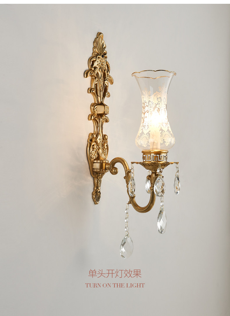 유럽식 모든 구리 벽 램프 거실 식당 침실 침대 옆 램프 연구 복도 통로 양방향 거울 헤드 라이트 변경 가능 전구