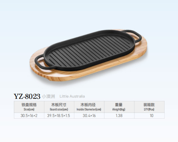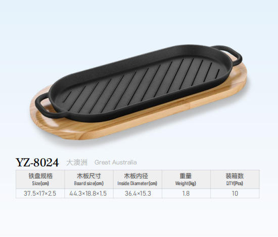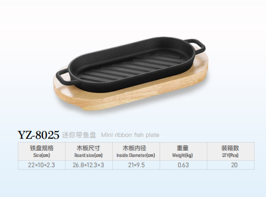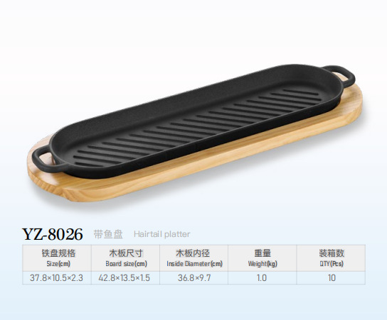 • 나무 판이있는 38*11 주철 갈치 플레이트 (깊이 2cm)