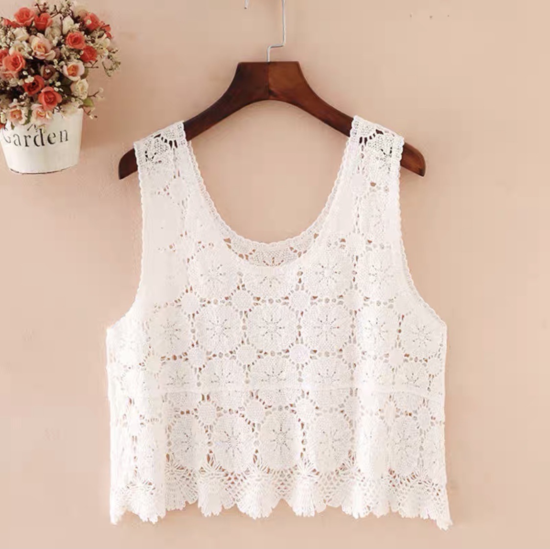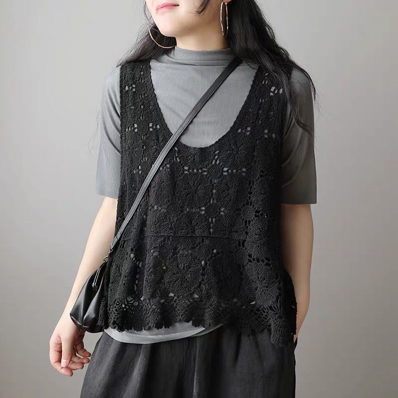 봄 새로운 자수 면사 중공 크로 셰 뜨개질 단색 조끼 복고풍 느슨한 여성의 외부 조끼 탑