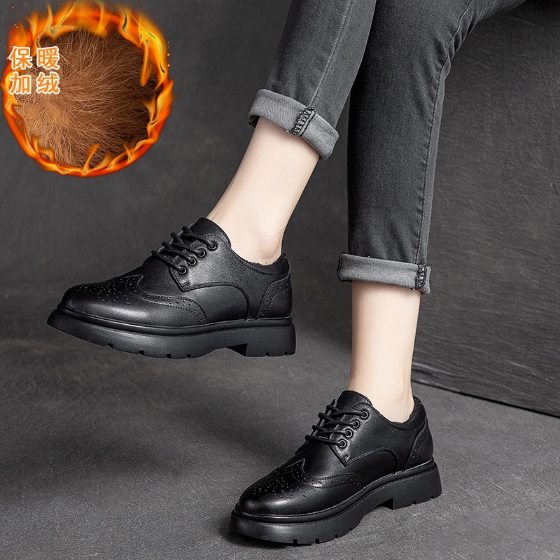 상하이 Jietu 에스닉 스타일 브록 캐주얼 여성 신발 깊은 입 레이스 업 탑 레이어 소가죽 보드 신발 봄과 가을 패션 싱글 레이어 신발스토어 가기