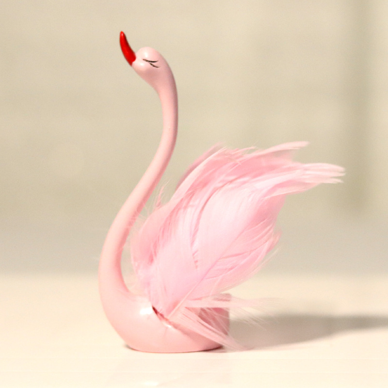 백조 케이크 장식 장식품 고귀한 날개 핑크 시리즈 수지 깃털 사랑 새 백조 케이크 인형