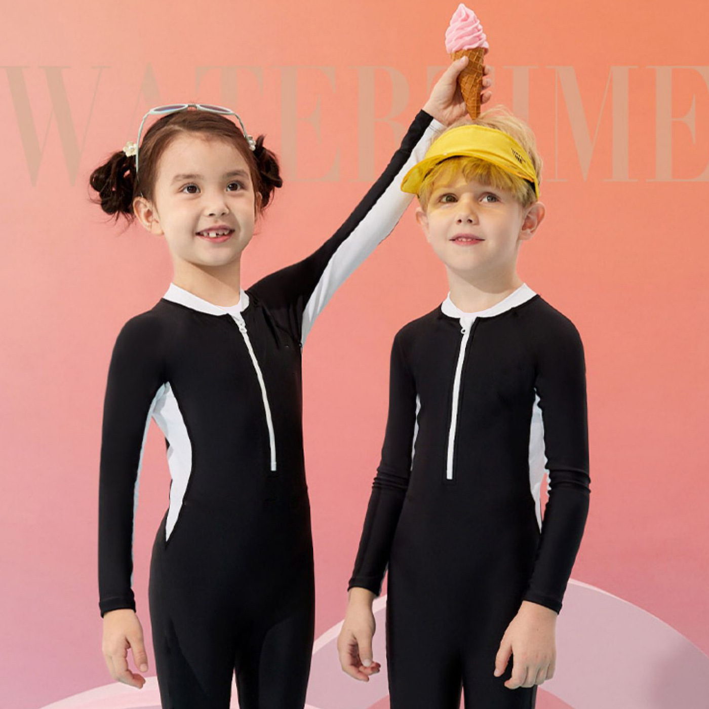 남아용 반팔 수영복 4-16세 여아용 다이빙 슈트 여학생용 자외선 차단 수영복 스포츠 스타일