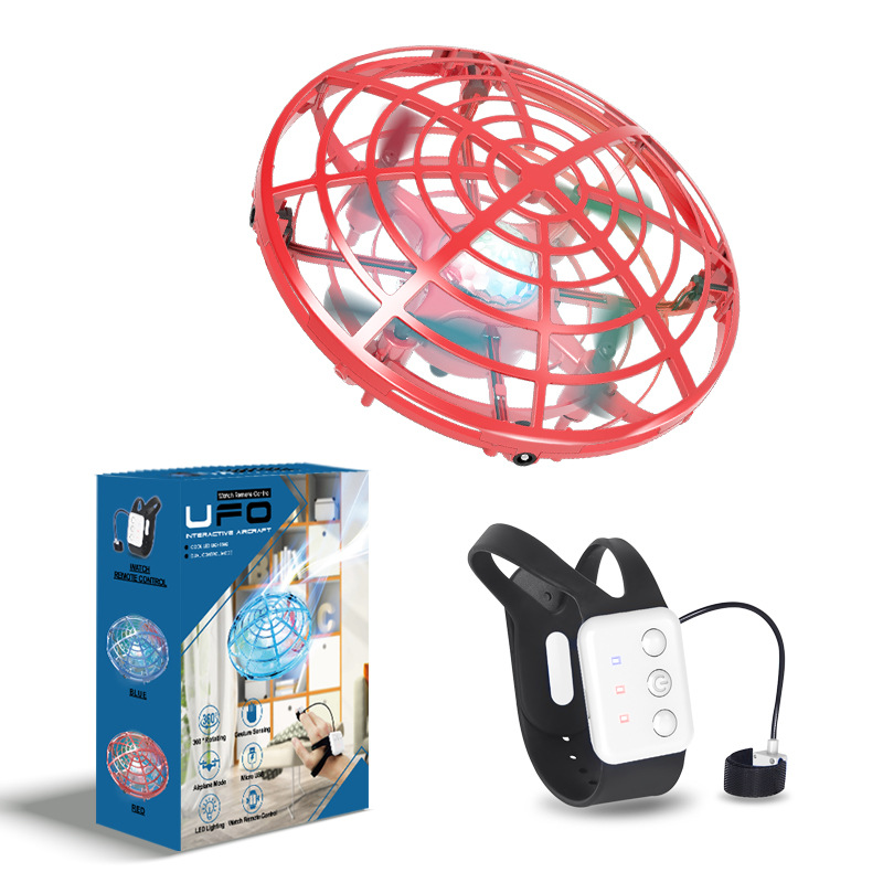 제조업체 승인 원격 조종 다채로운 조명 5센서 4축 드론 어린이 장난감 UFO 미니 공중부양 회전 비행접시