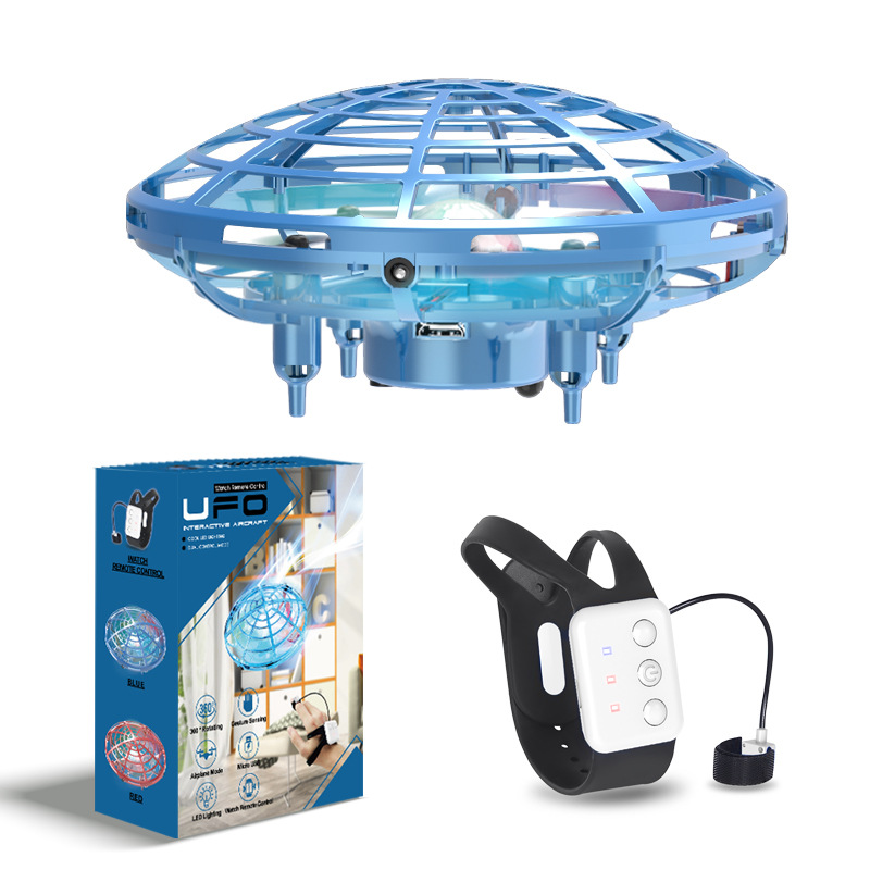 제조업체 승인 원격 조종 다채로운 조명 5센서 4축 드론 어린이 장난감 UFO 미니 공중부양 회전 비행접시스토어 가기