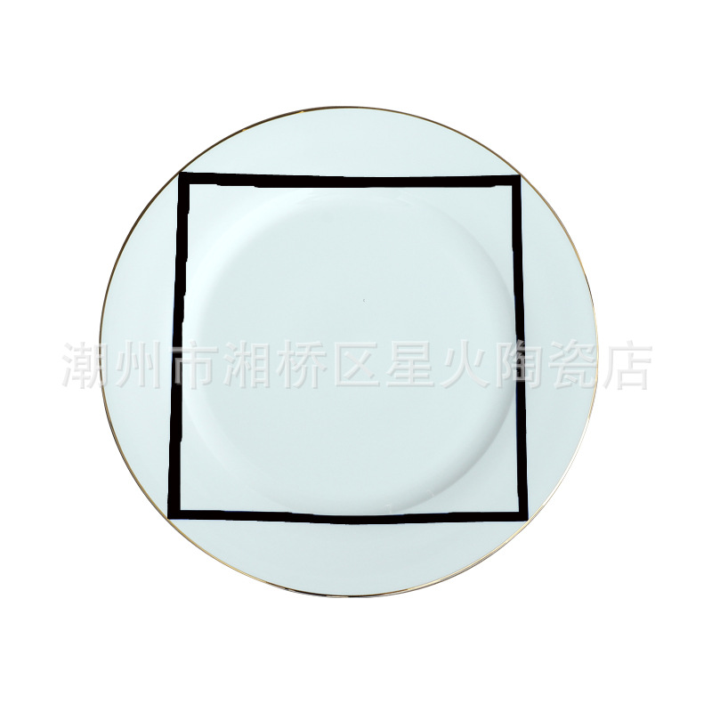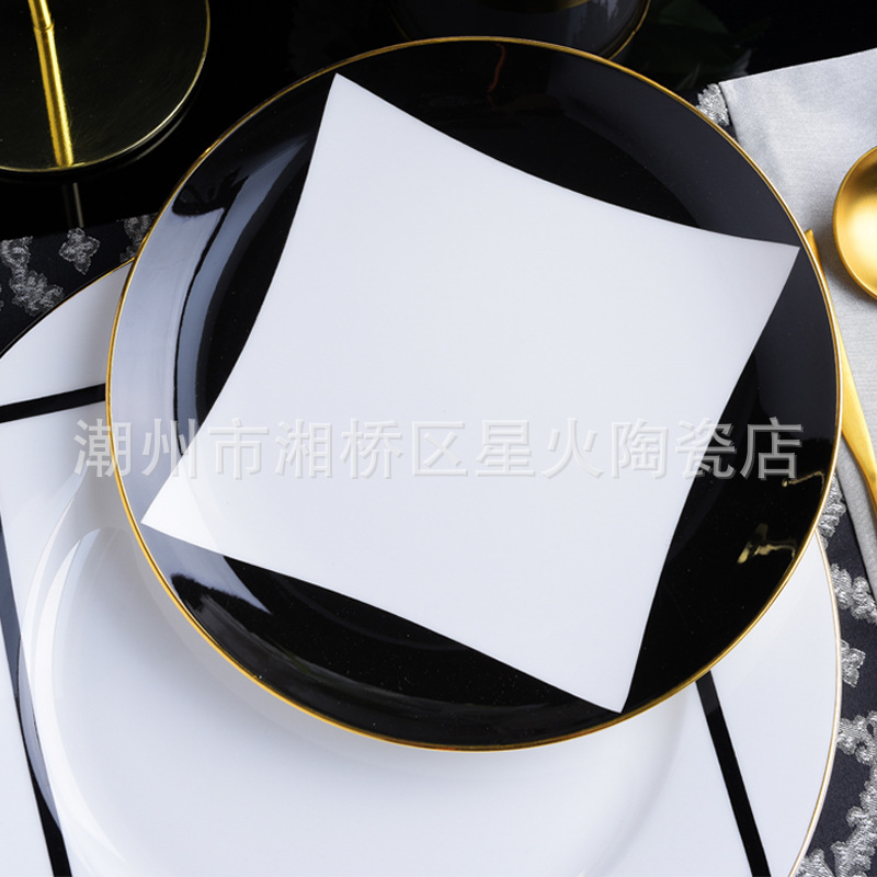 유럽 스타일 모델 룸 식기 장식품 세트 블랙 기하학적 접시 빛 고급 서양 음식 접시 스테이크 접시 클럽 테이블
