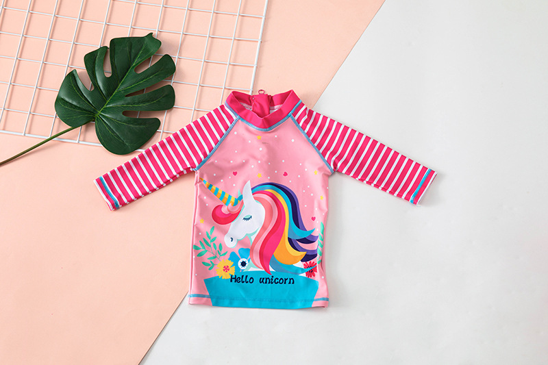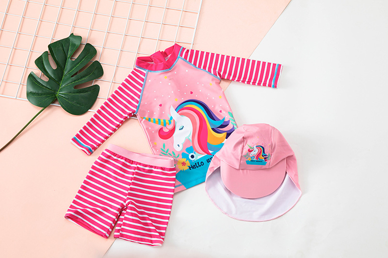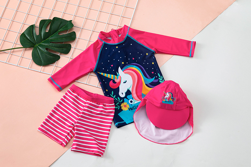 여자 귀여운 만화 자외선 차단제 속건 수영복 한국 아기 소형 중형 어린이 수영 트렁크 분할 어린이 수영복