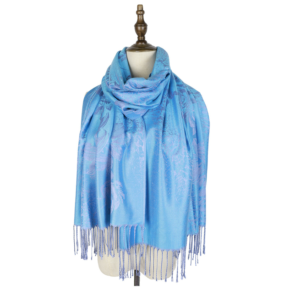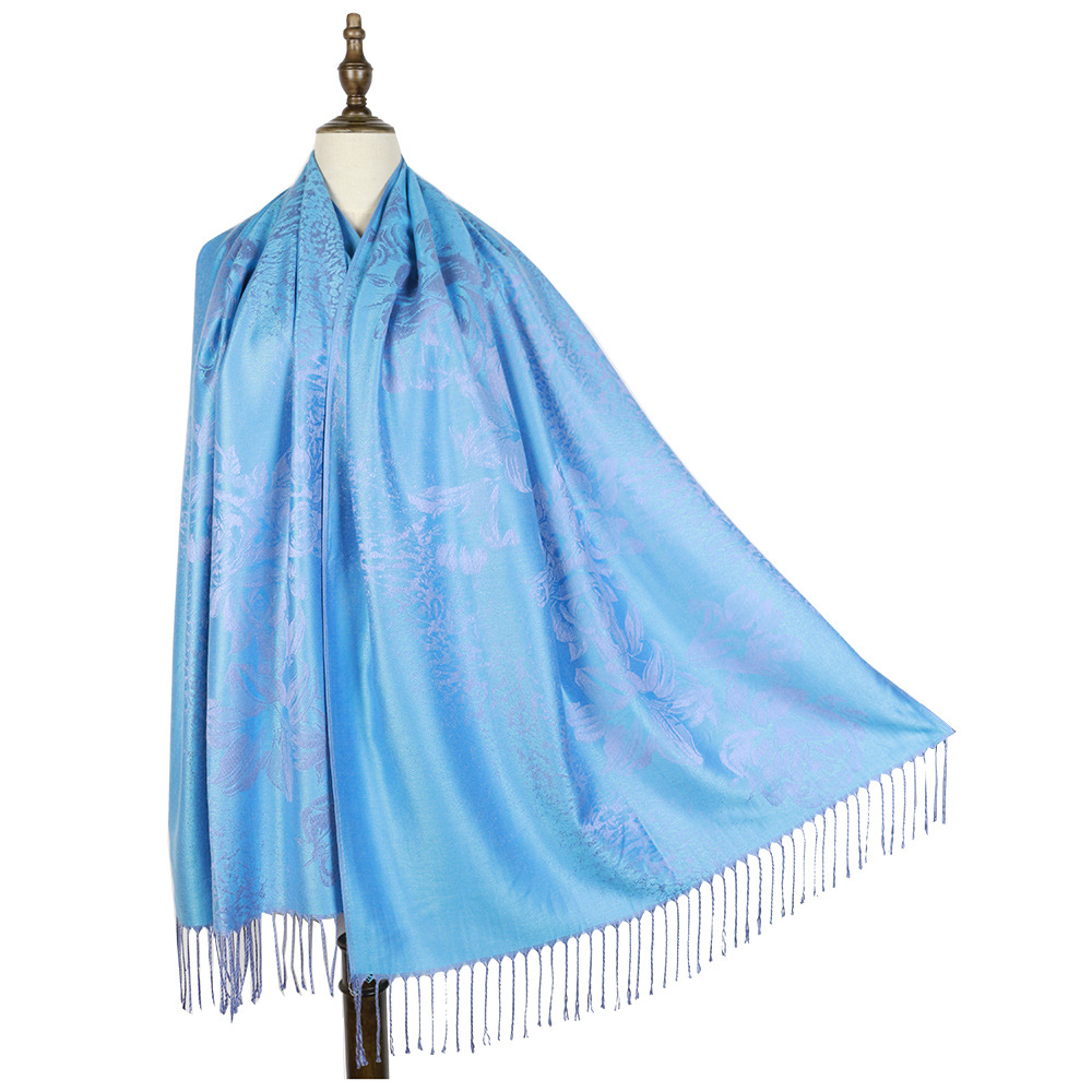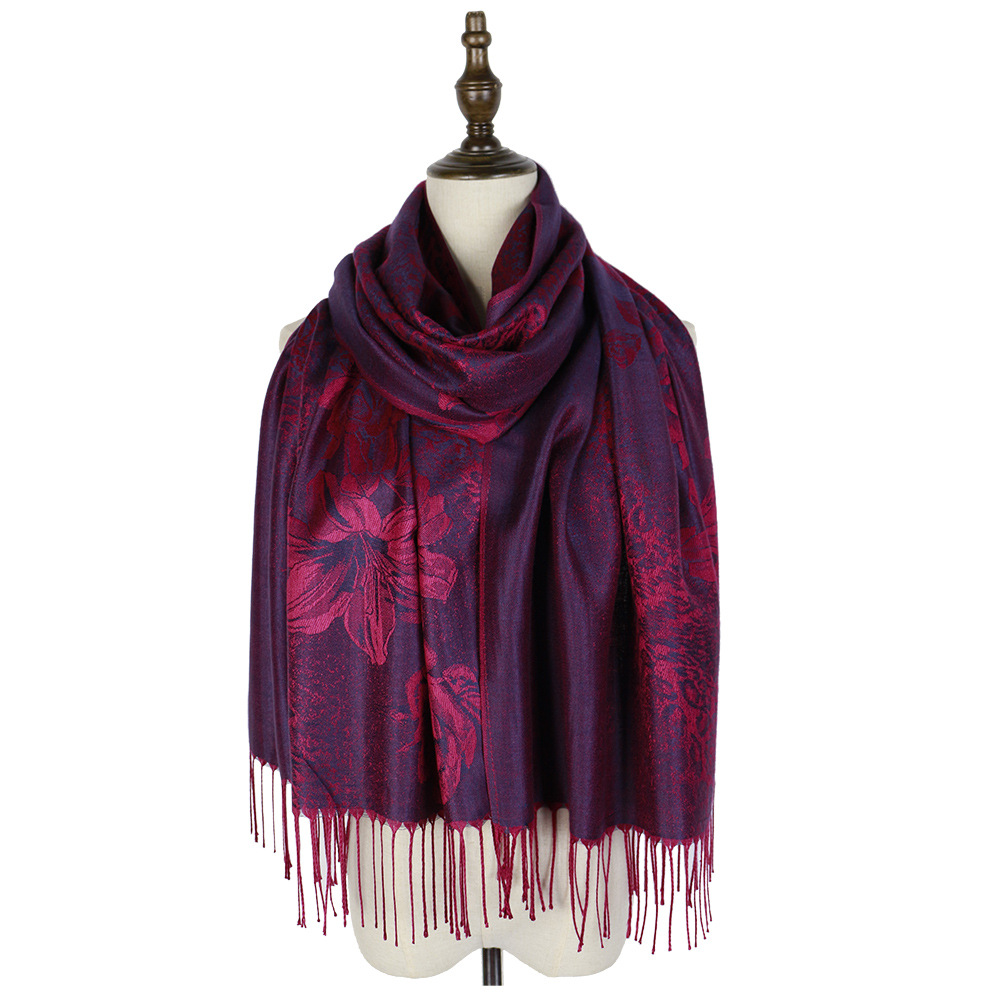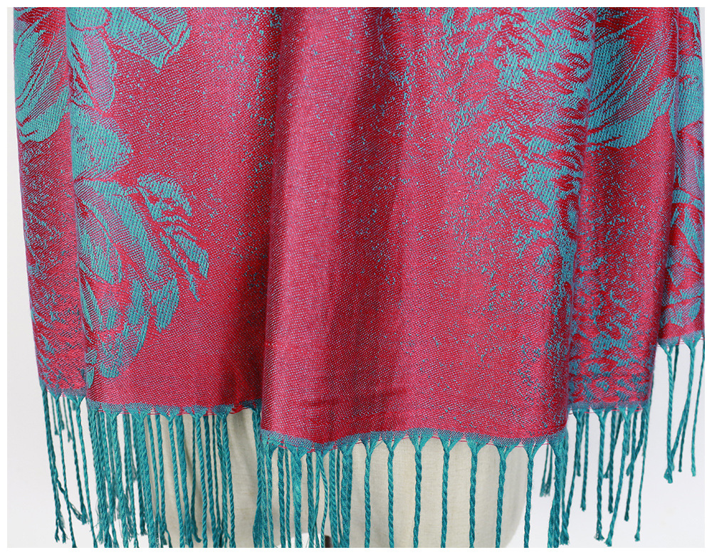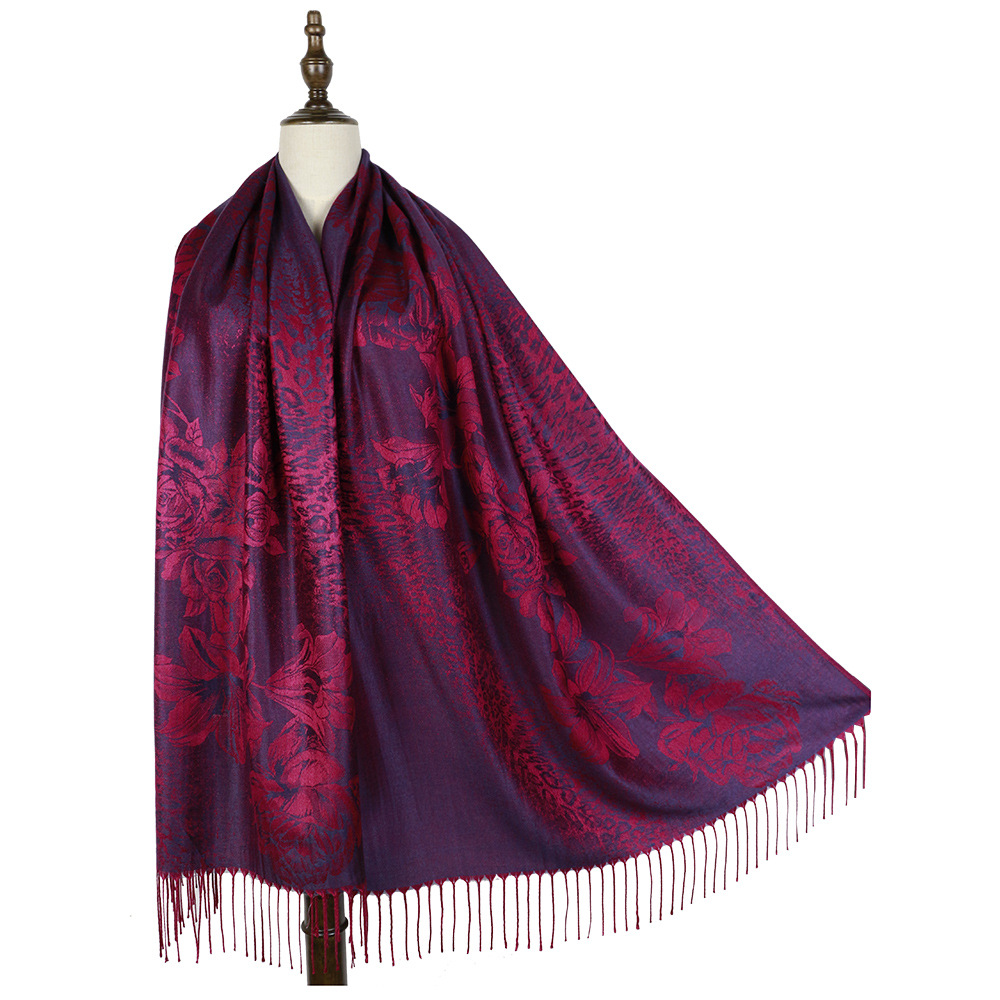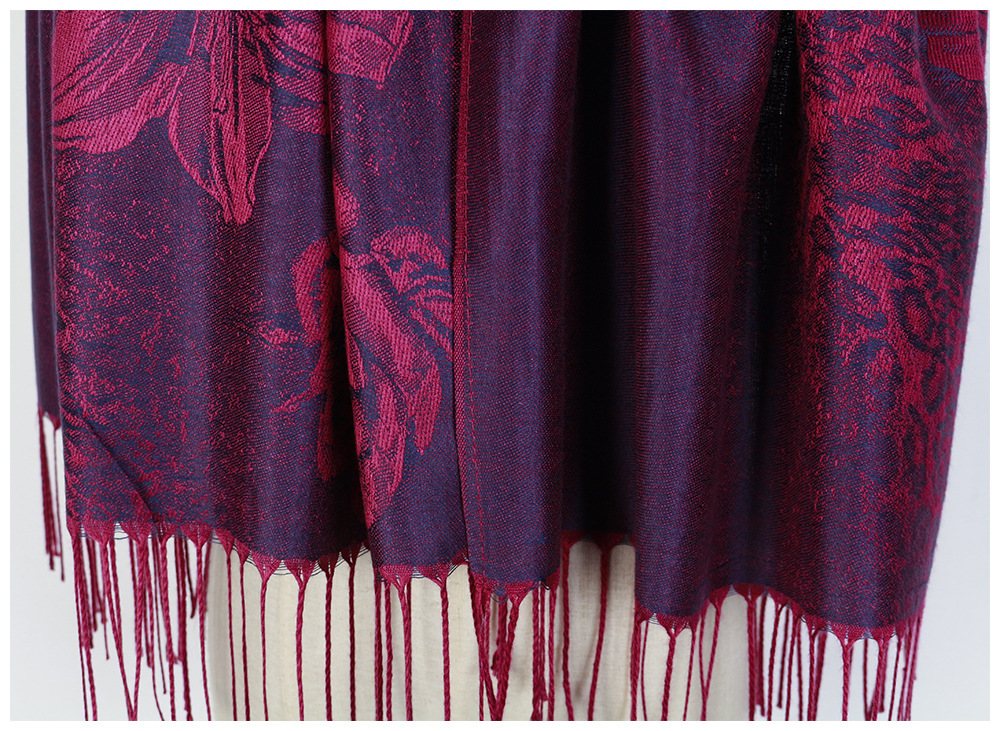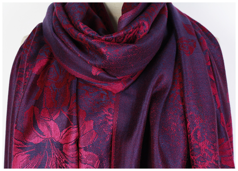 #918斜纹牡丹双面提花围巾人棉披肩晚宴气质Pashmina Shawl Scarf