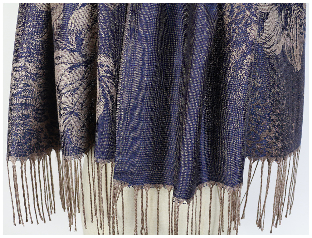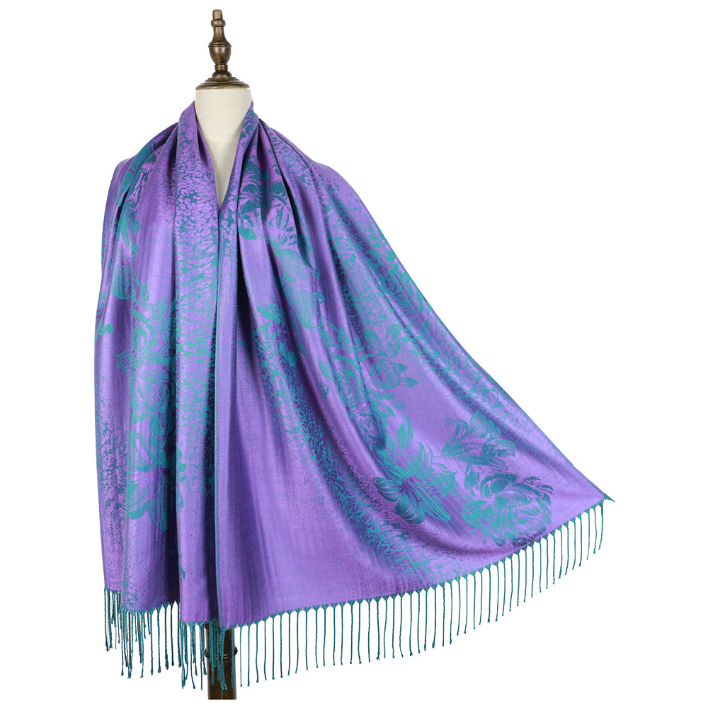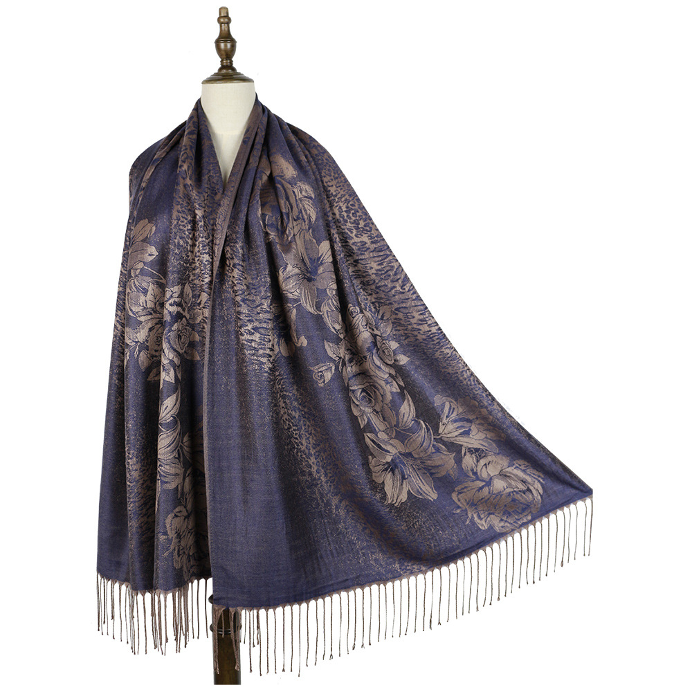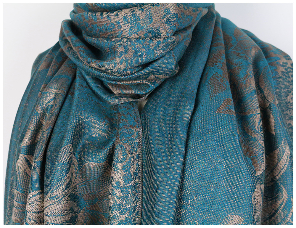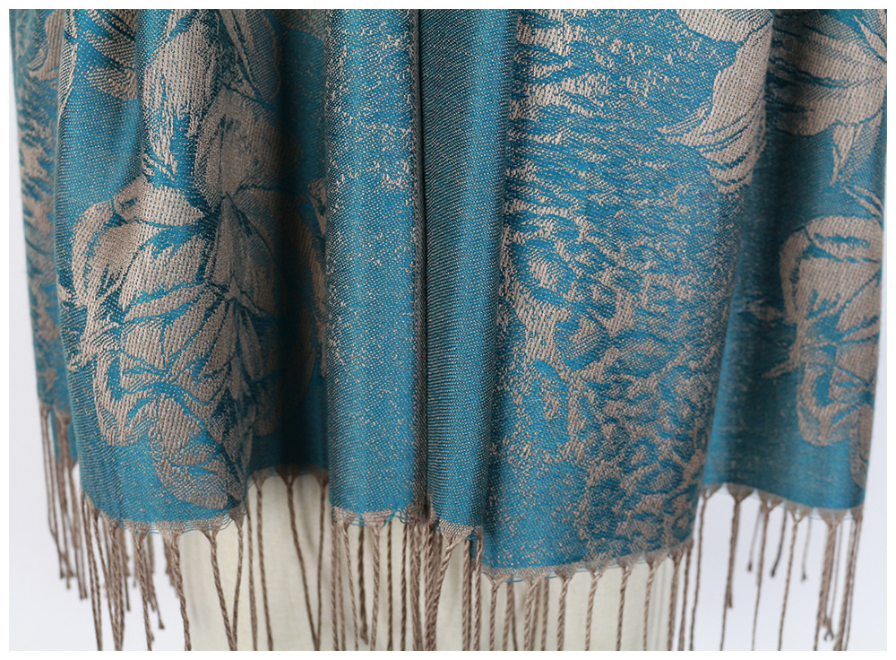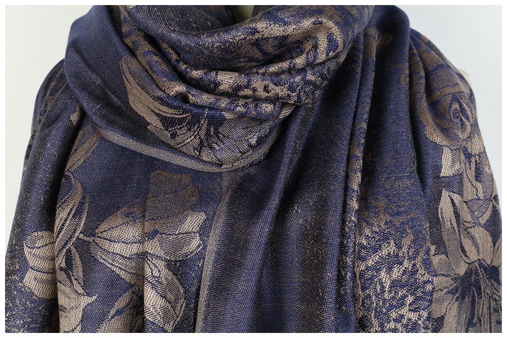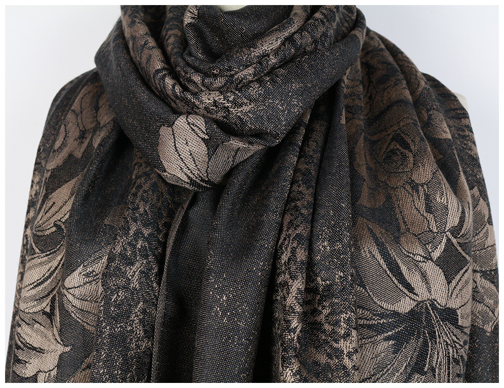 #918斜纹牡丹双面提花围巾人棉披肩晚宴气质Pashmina Shawl Scarf