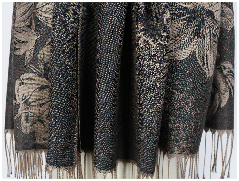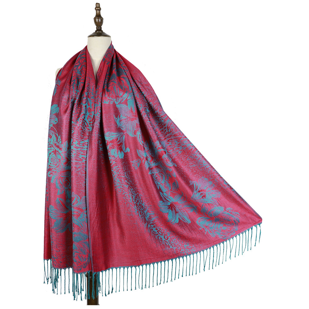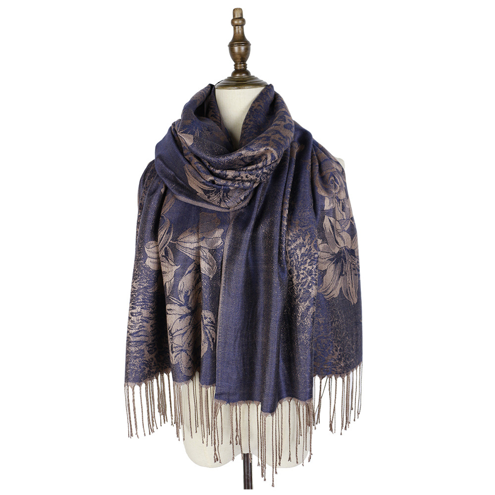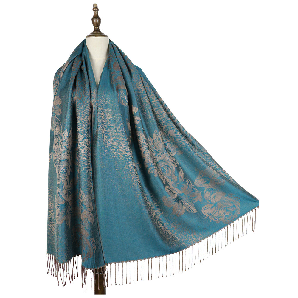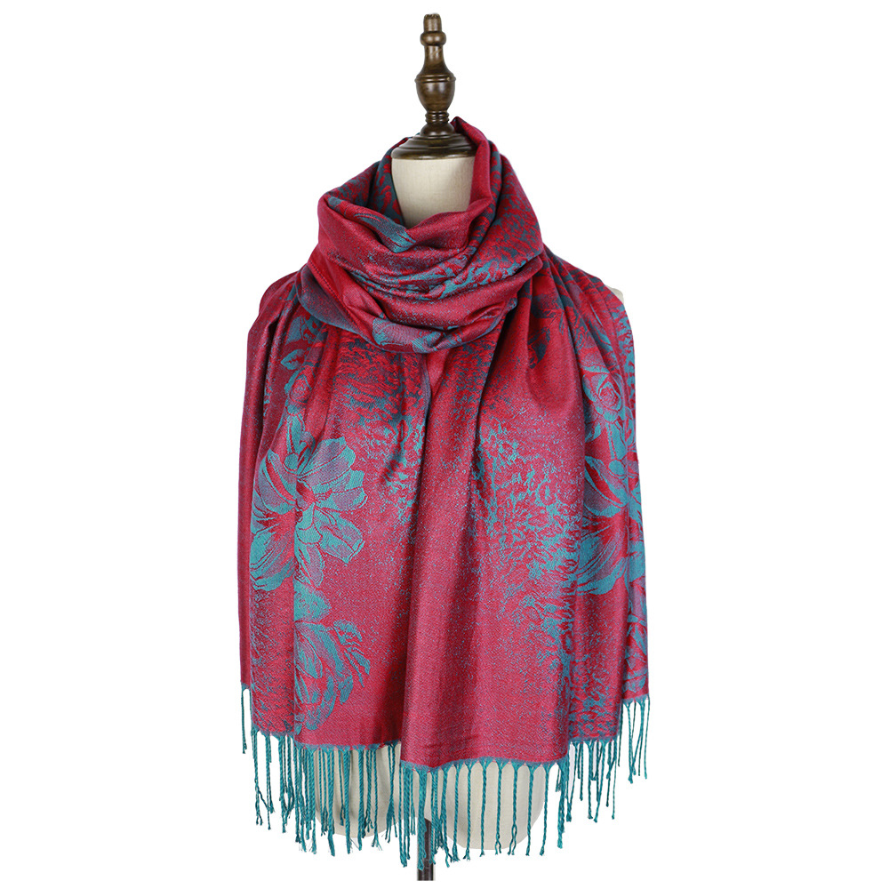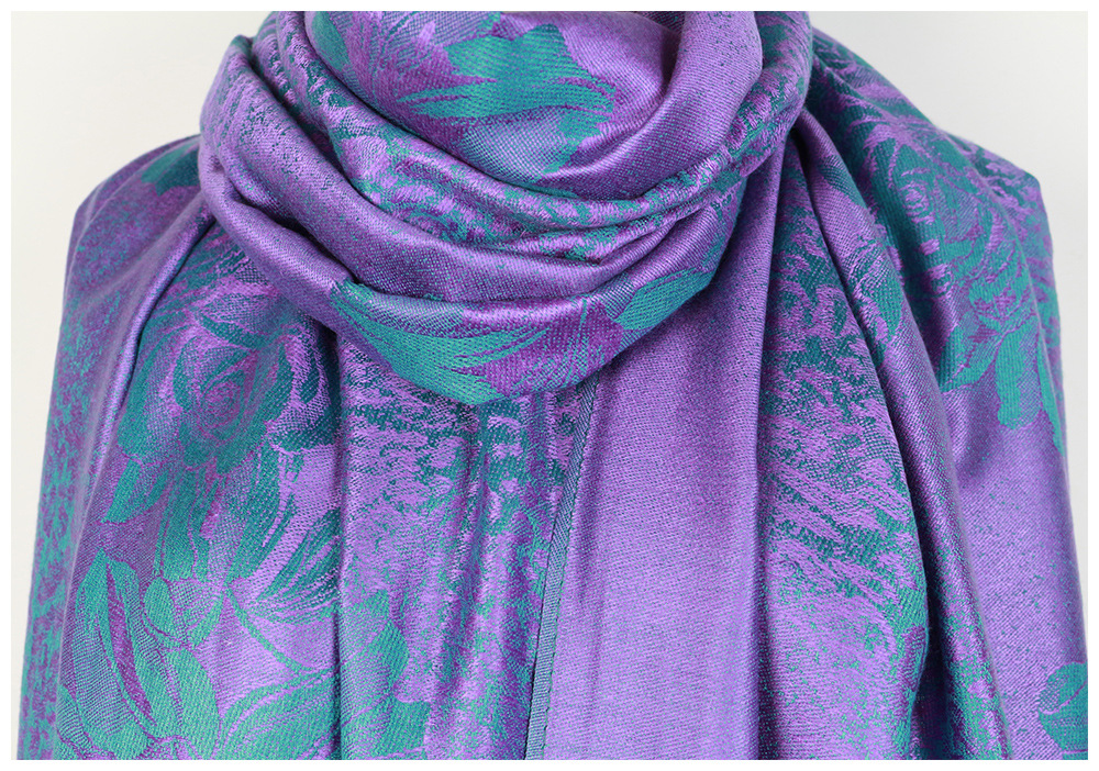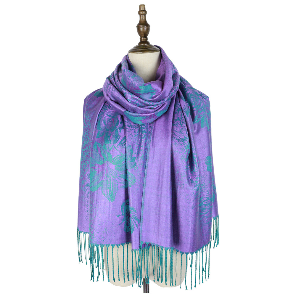 #918斜纹牡丹双面提花围巾人棉披肩晚宴气质Pashmina Shawl Scarf