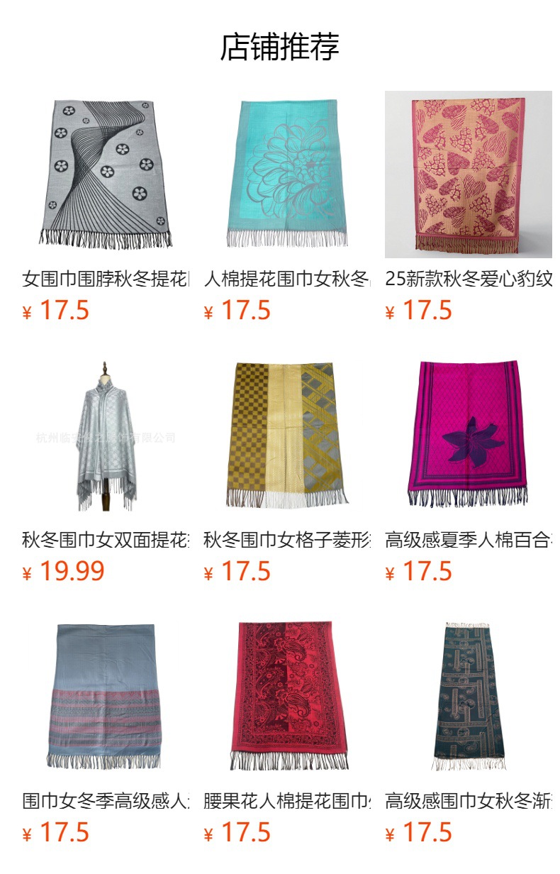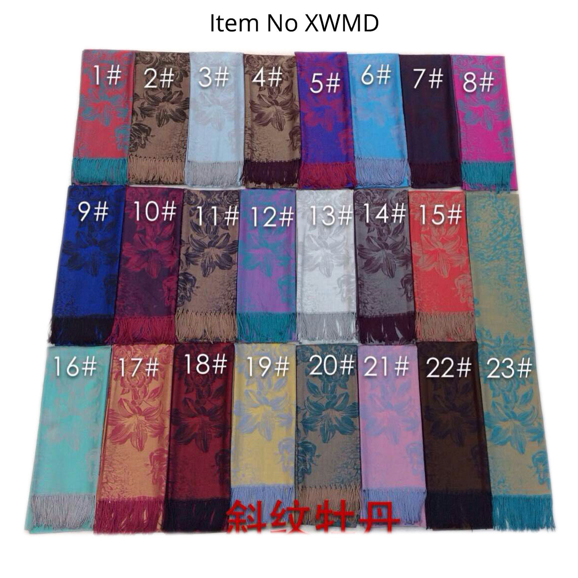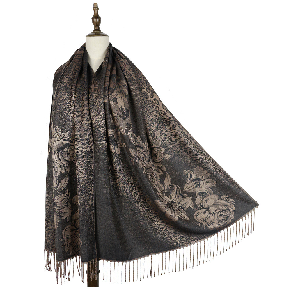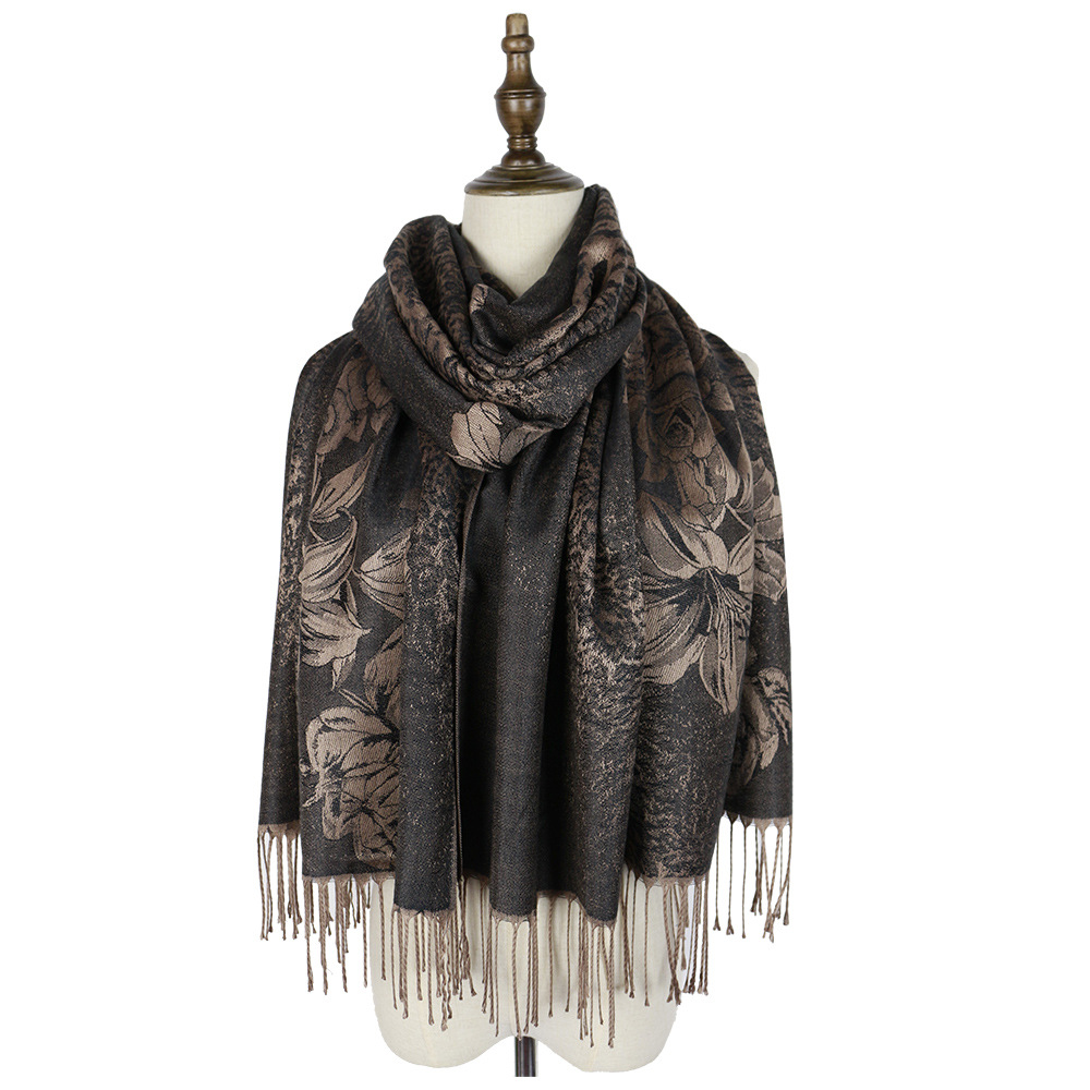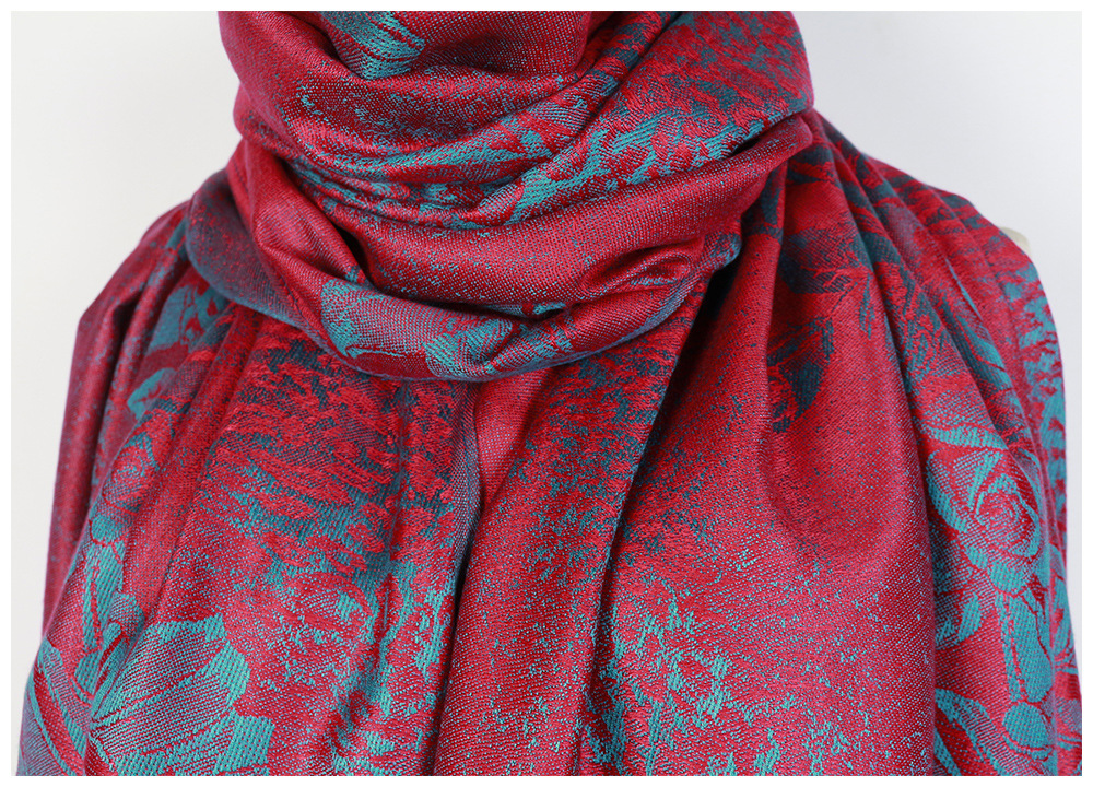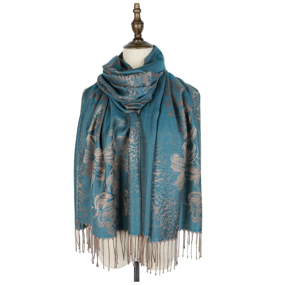 #918斜纹牡丹双面提花围巾人棉披肩晚宴气质Pashmina Shawl Scarf