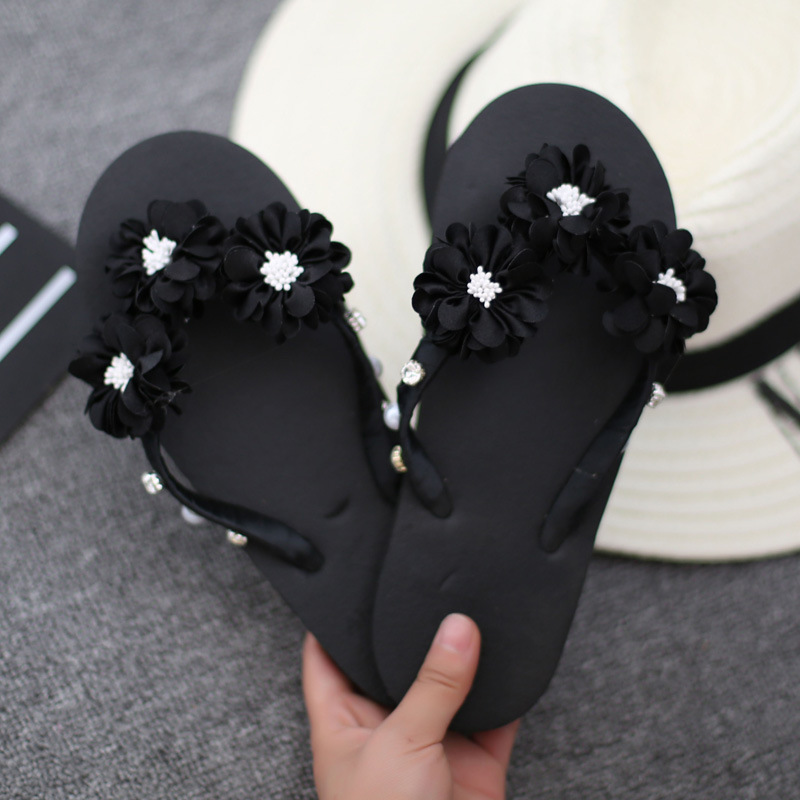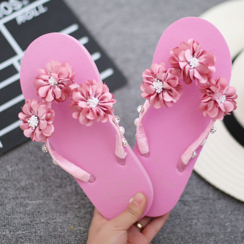 인 사이버 연예인 비치 슈즈 수제 꽃 플립 플롭 해변 해변 해변 휴가 플립 플롭 미끄럼 방지 슬리퍼 달콤한 샌들
