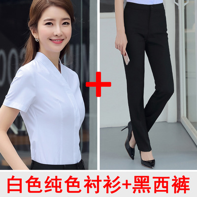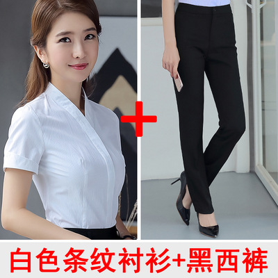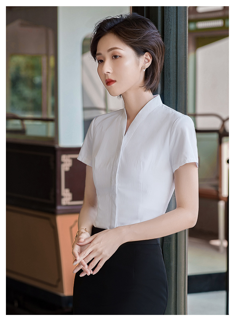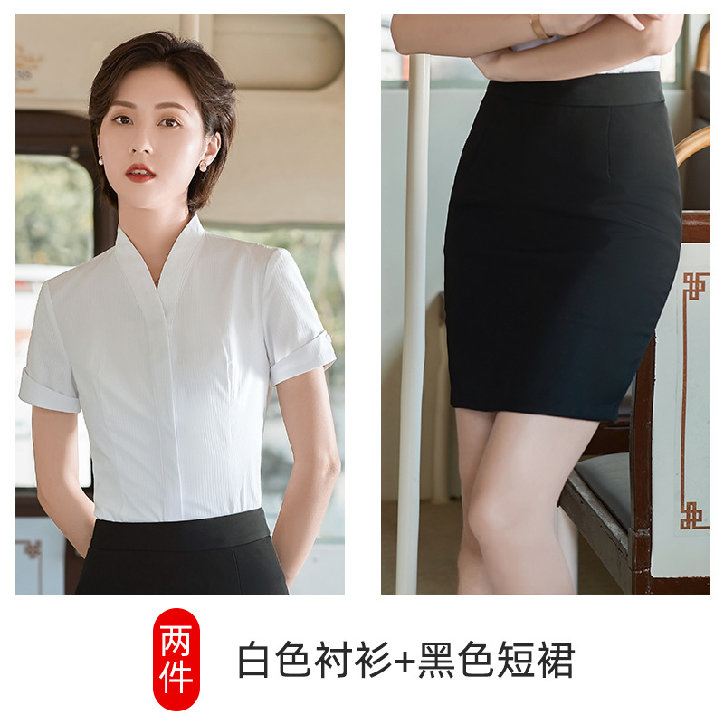 남방항공 승무원 흰색 셔츠 여성 반팔 직업복 승무원 면접 승무원 예술 시험 고속철도 유니폼 면 소재스토어 가기