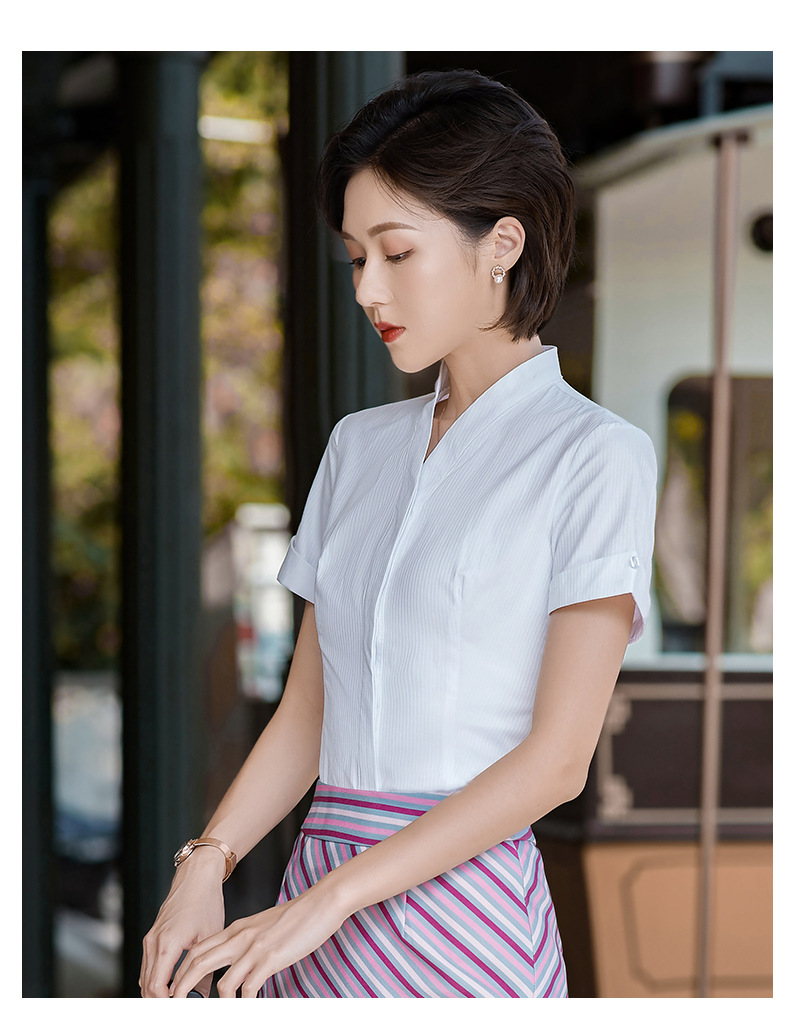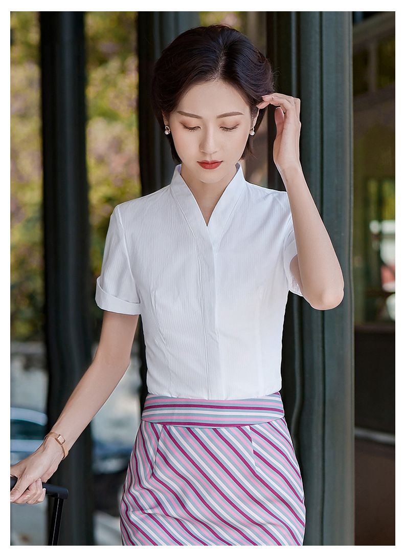 남방항공 승무원 흰색 셔츠 여성 반팔 직업복 승무원 면접 승무원 예술 시험 고속철도 유니폼 면 소재
