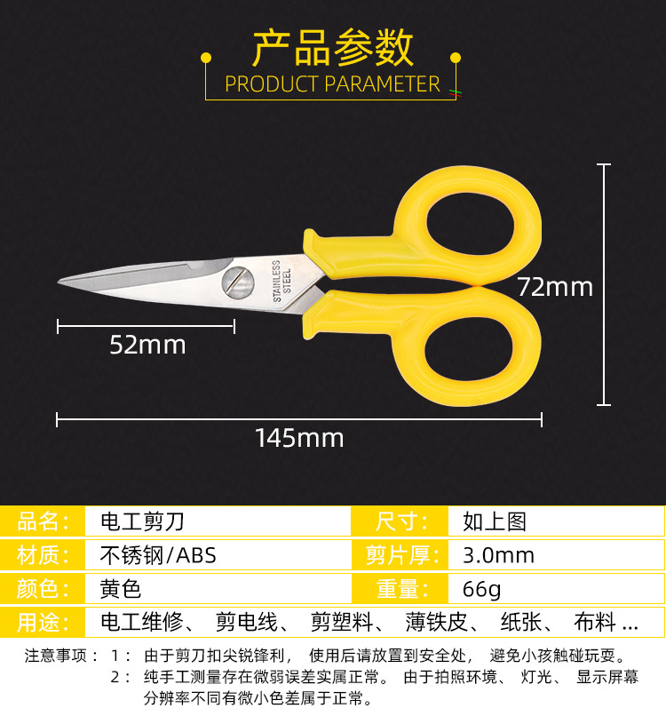 • 전기 가위*노란색*스테인레스 스틸*일반 광택*ABS*145*52*66