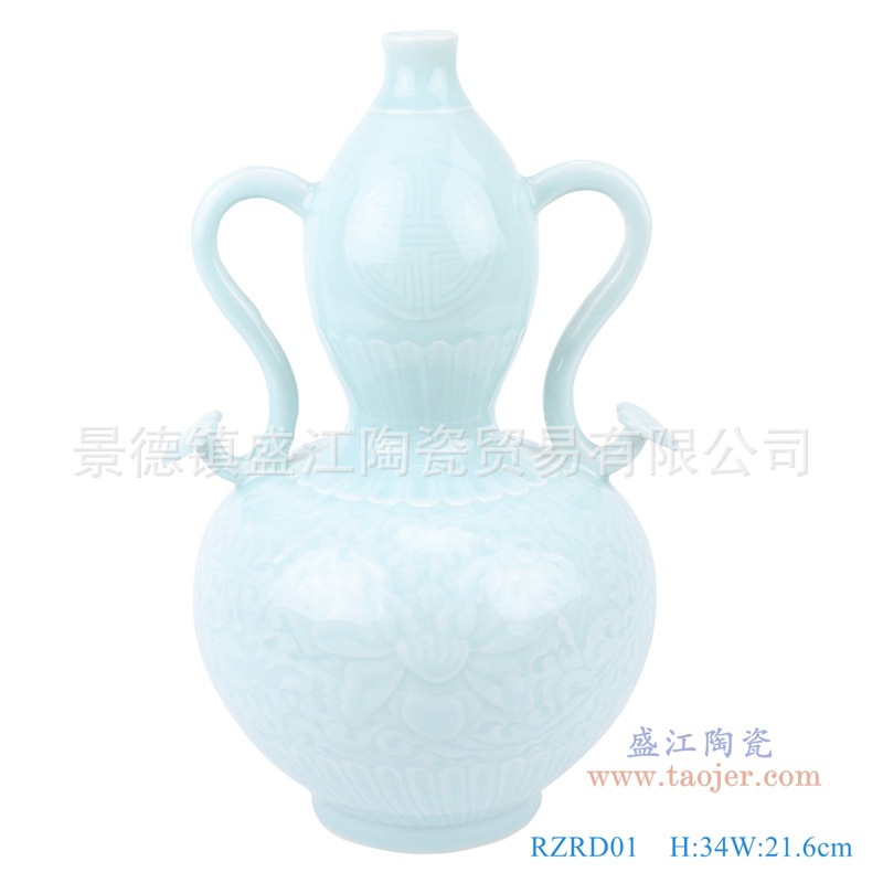 Jingdezhen 세라믹 수제 조각 녹색 유약 조롱박 병 홈 장식 호텔 빌라 꽃병 장식품스토어 가기
