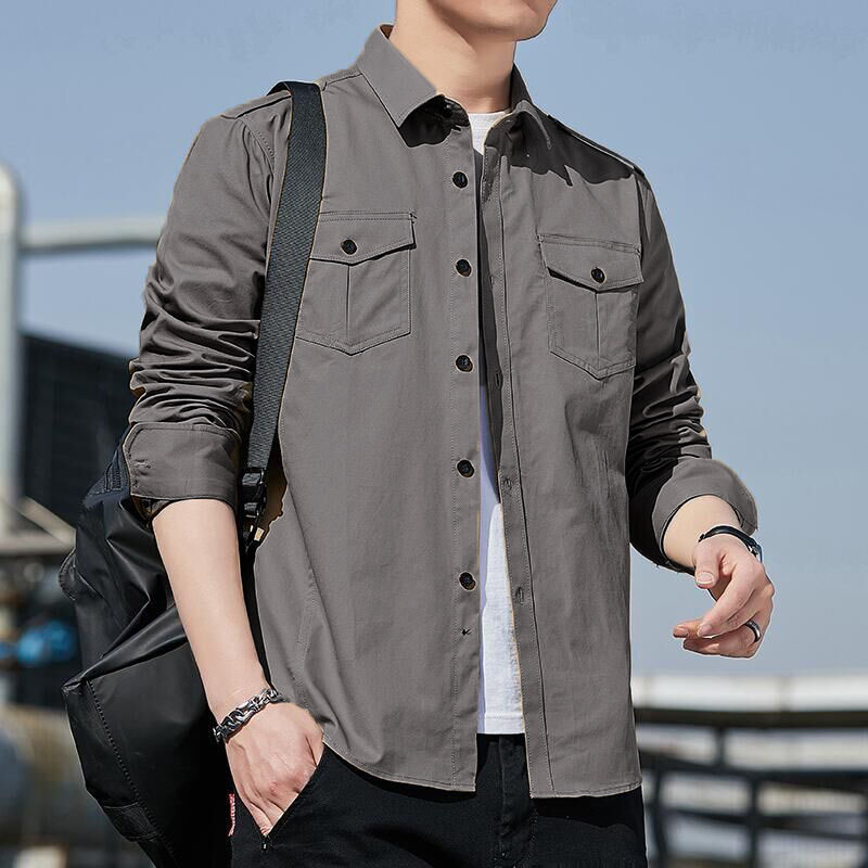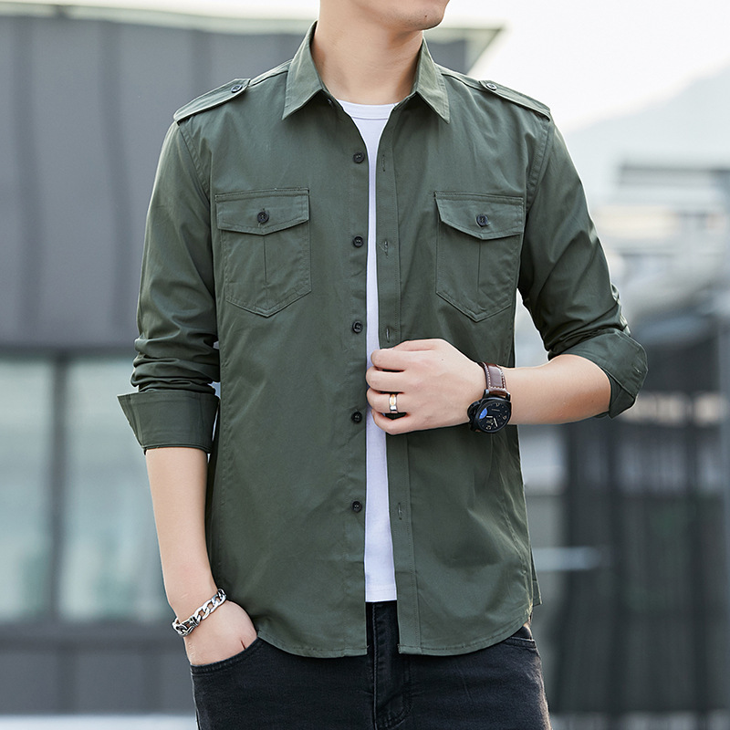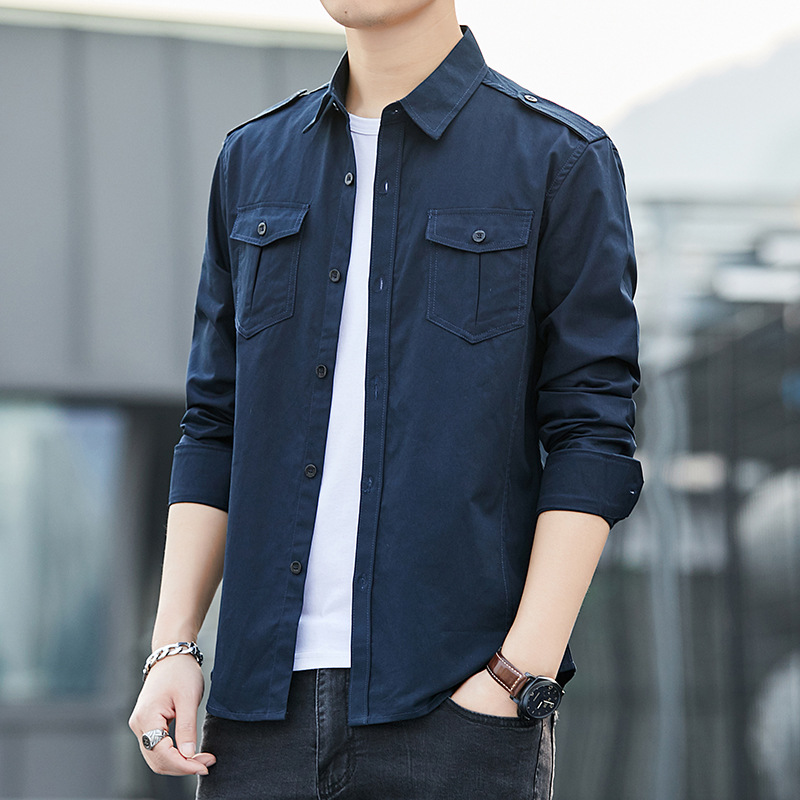 더블 포켓 셔츠 남성용 긴팔 봄과 가을 새로운 한국식 유행 셔츠 의류 학생 만능 작업 재킷 잘 생긴