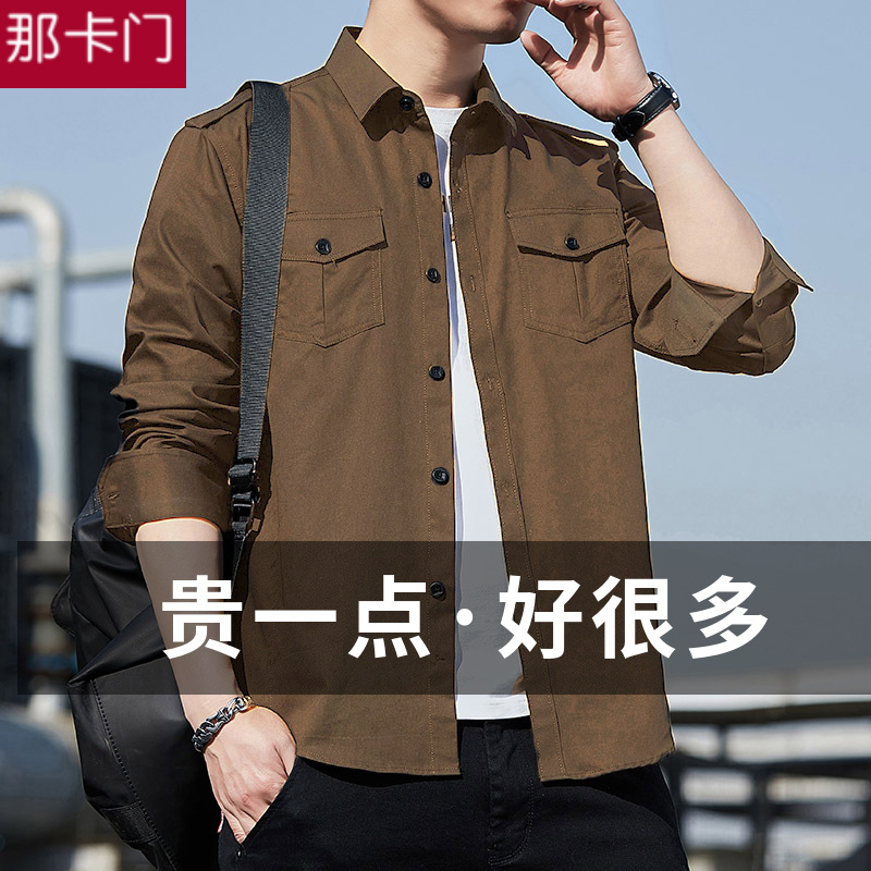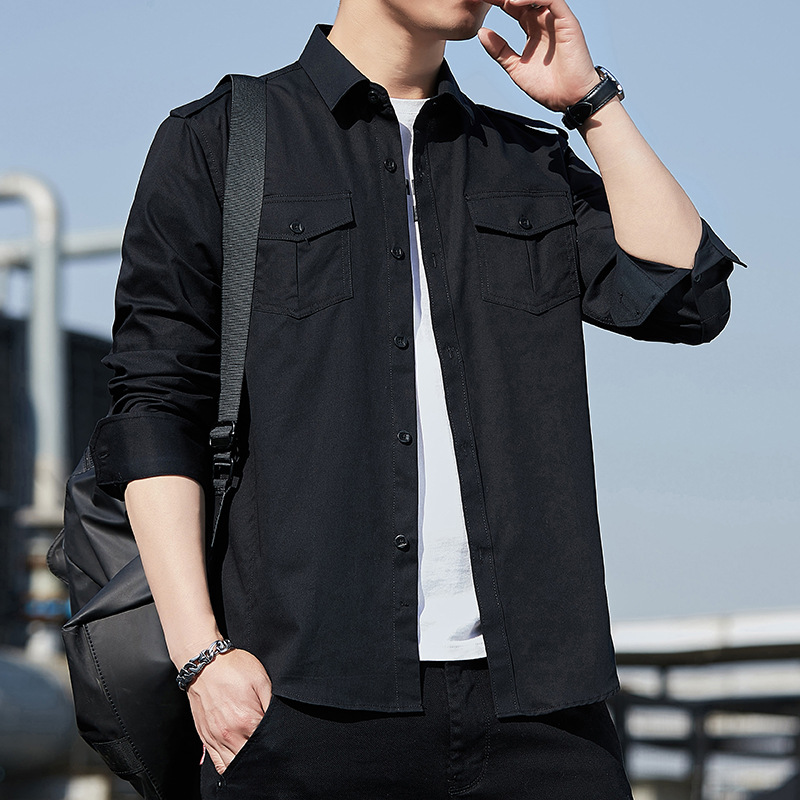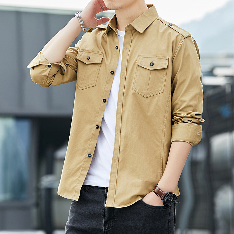 더블 포켓 셔츠 남성용 긴팔 봄과 가을 새로운 한국식 유행 셔츠 의류 학생 만능 작업 재킷 잘 생긴스토어 가기