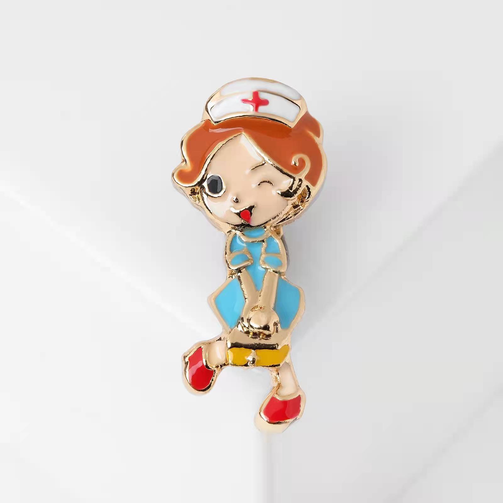 크리 에이 티브 만화 브로치 의사 간호사 의료 핀 오일 드롭 실크 타월 버클 배지 보석 귀여운 고급 브로치스토어 가기