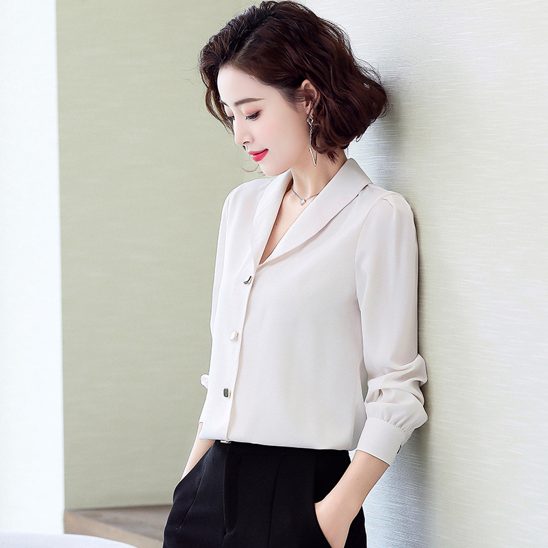 봄 시즌 쉬폰 셔츠 여성용 긴팔 셔츠 디자인 감각 있는 니치 상의 신상 패셔너블하고 다재다능한 셔츠스토어 가기