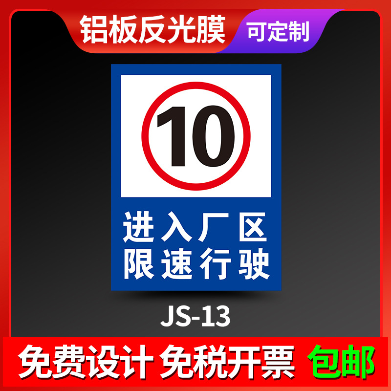 • 10 km 파란색 20x30cm 를 운전하는 공장 지역 속도 제한을 입력하십시오.