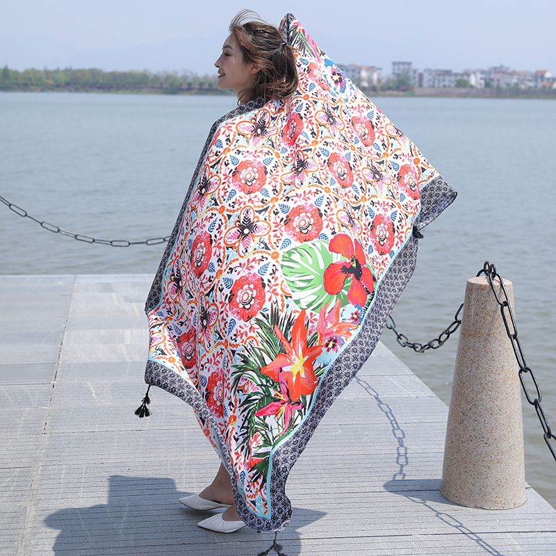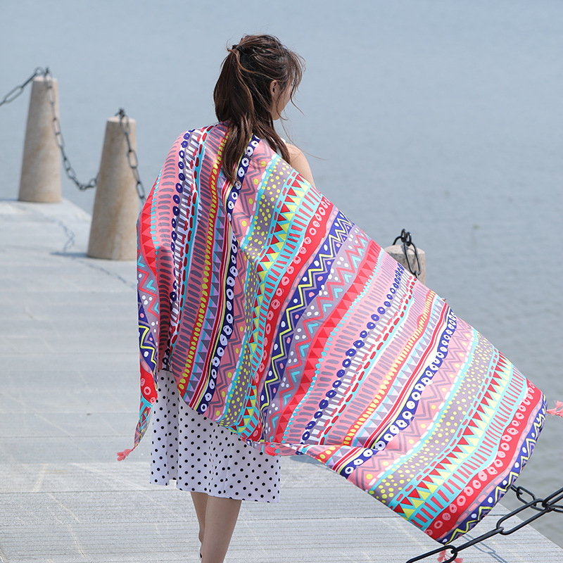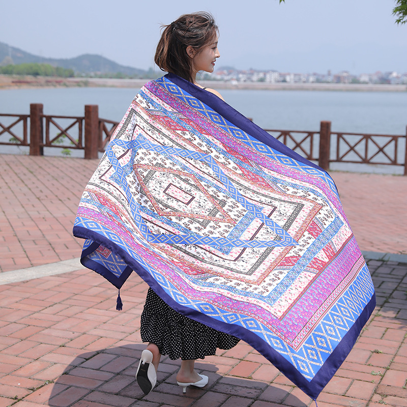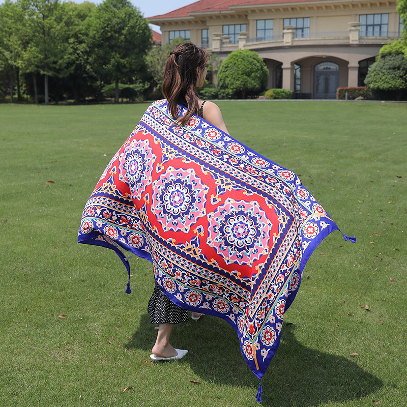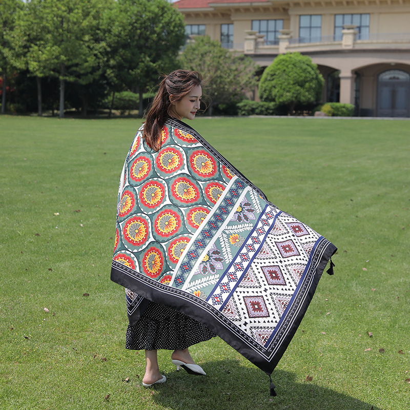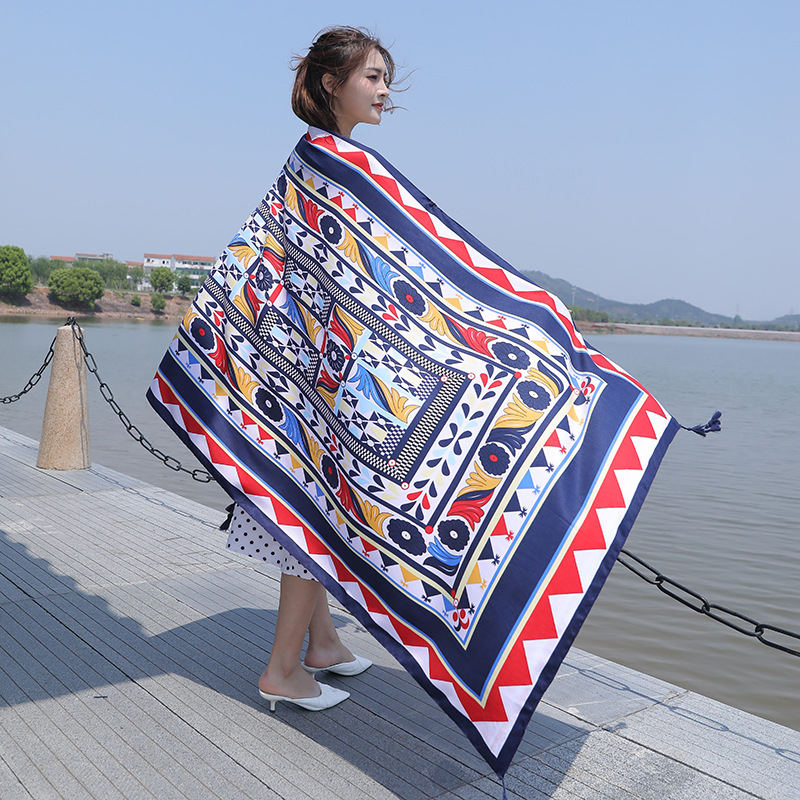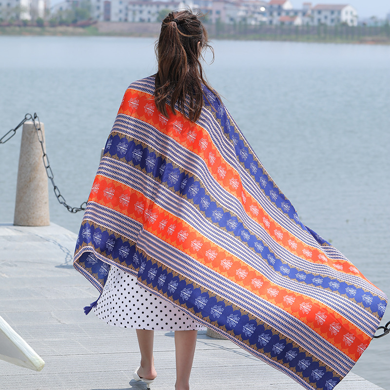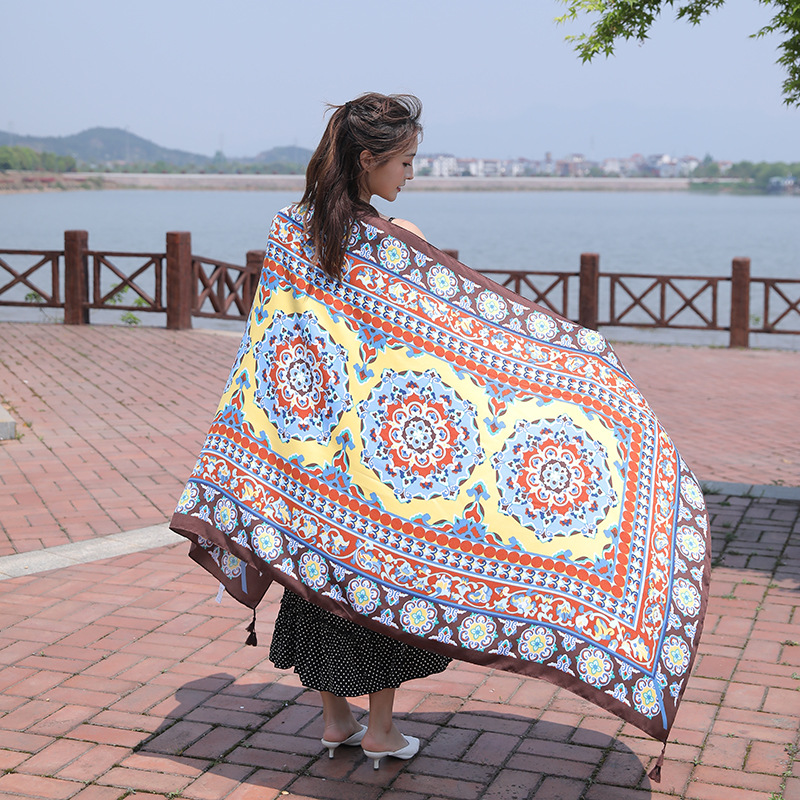 여름면과 린넨 에스닉 스타일 여행 실크 스카프 휴가 자외선 차단제 스카프 에어컨 대형 숄 여성용 해변 비치 타올