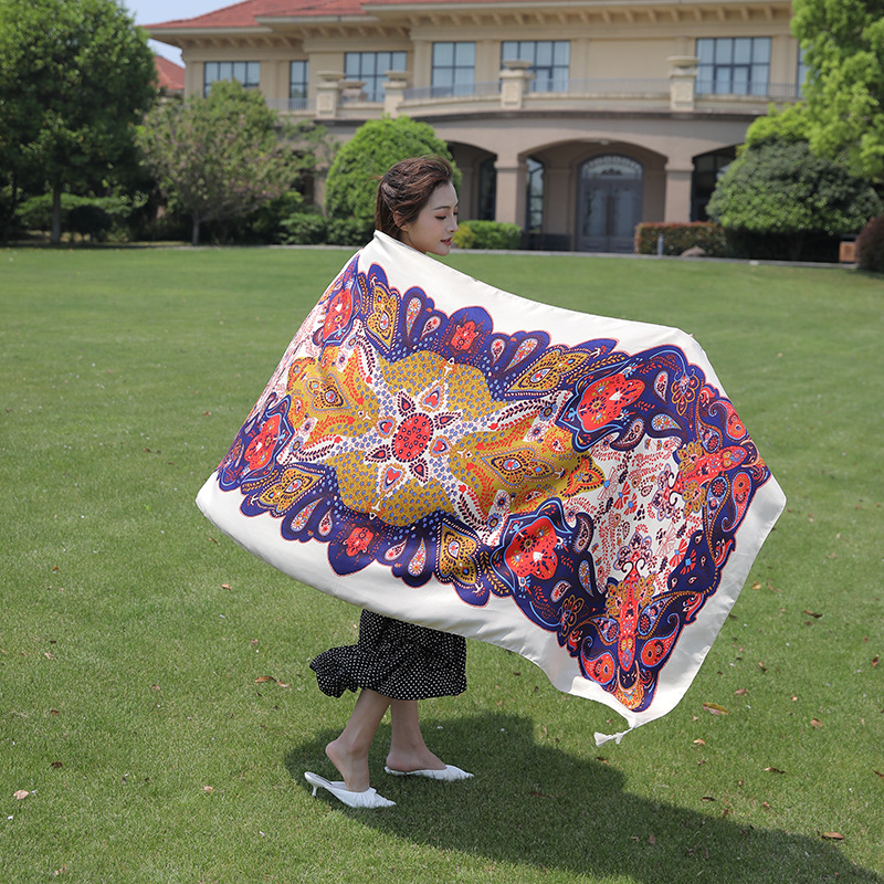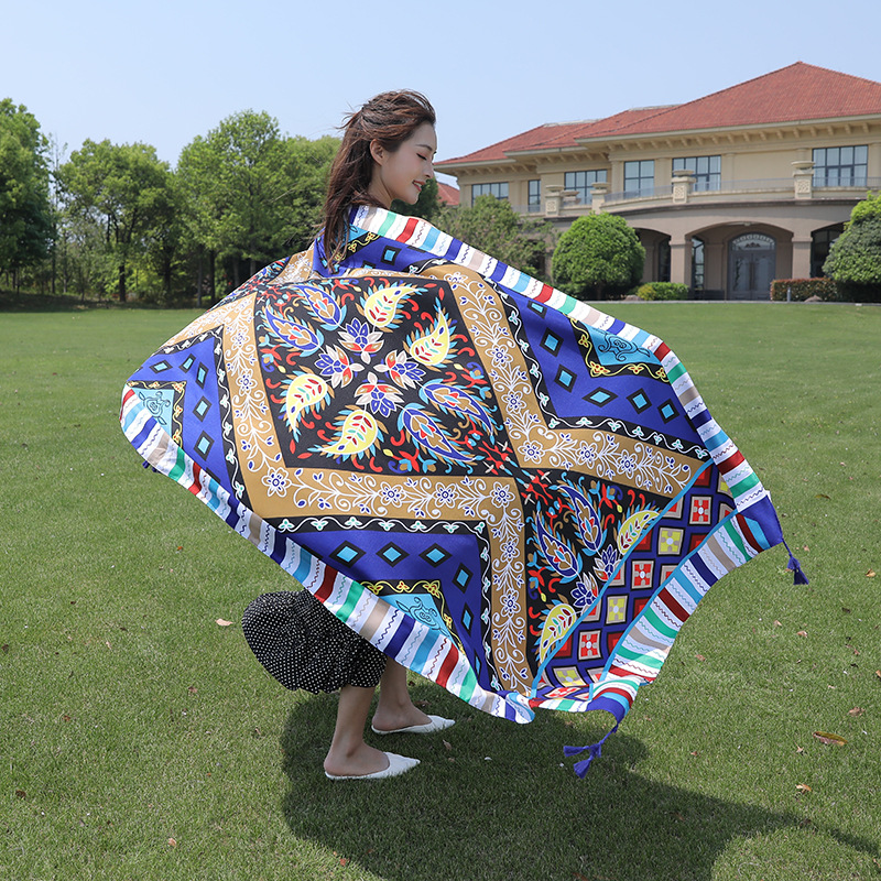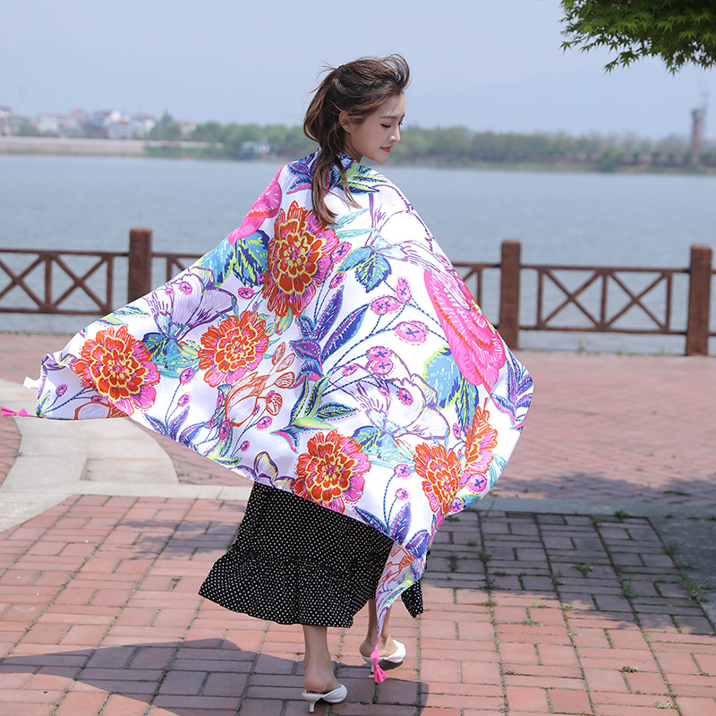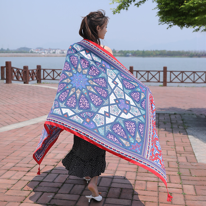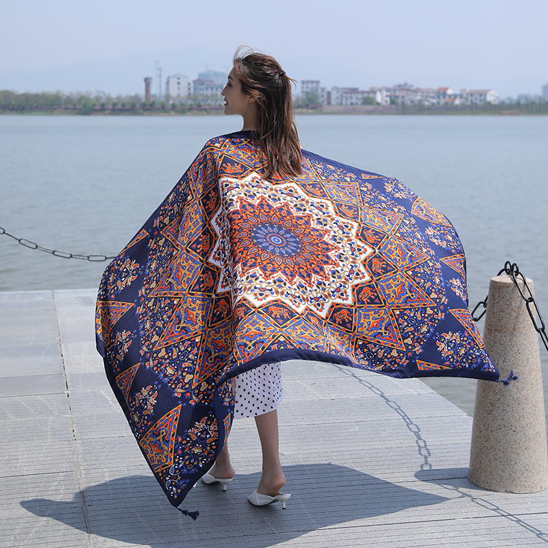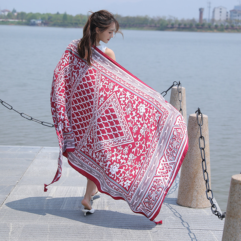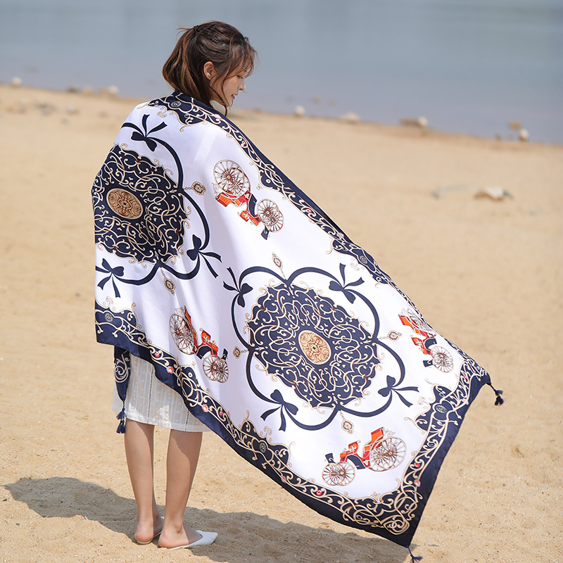 여름면과 린넨 에스닉 스타일 여행 실크 스카프 휴가 자외선 차단제 스카프 에어컨 대형 숄 여성용 해변 비치 타올