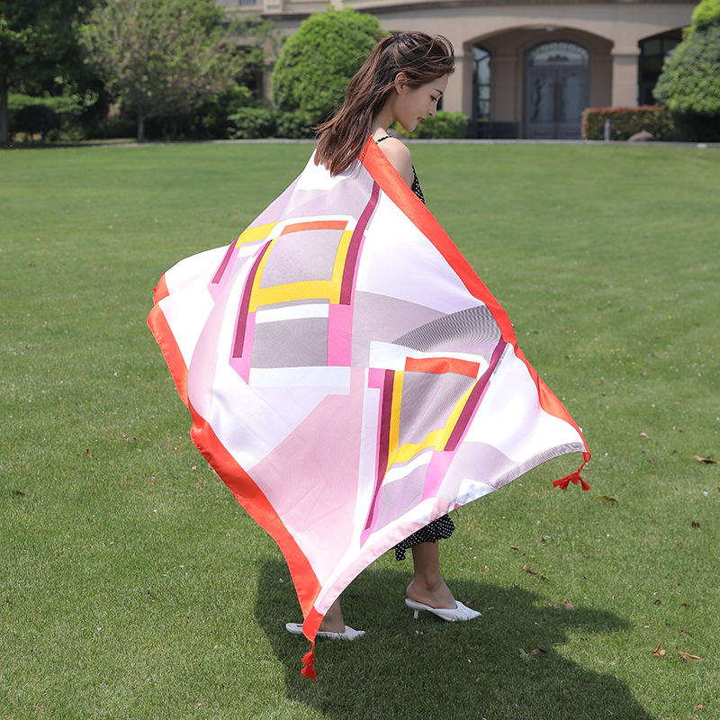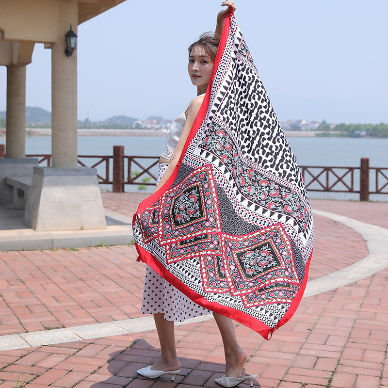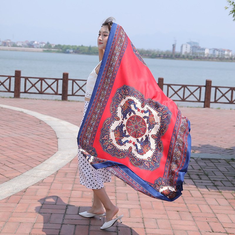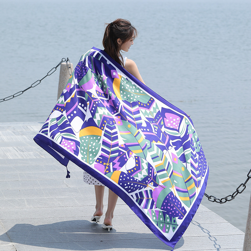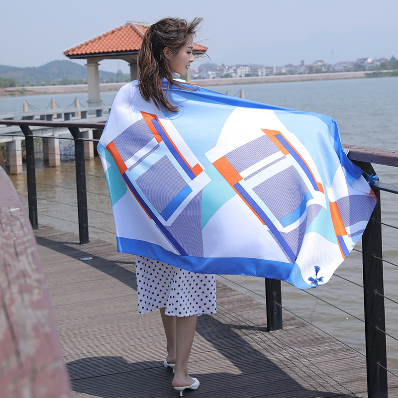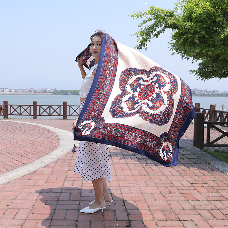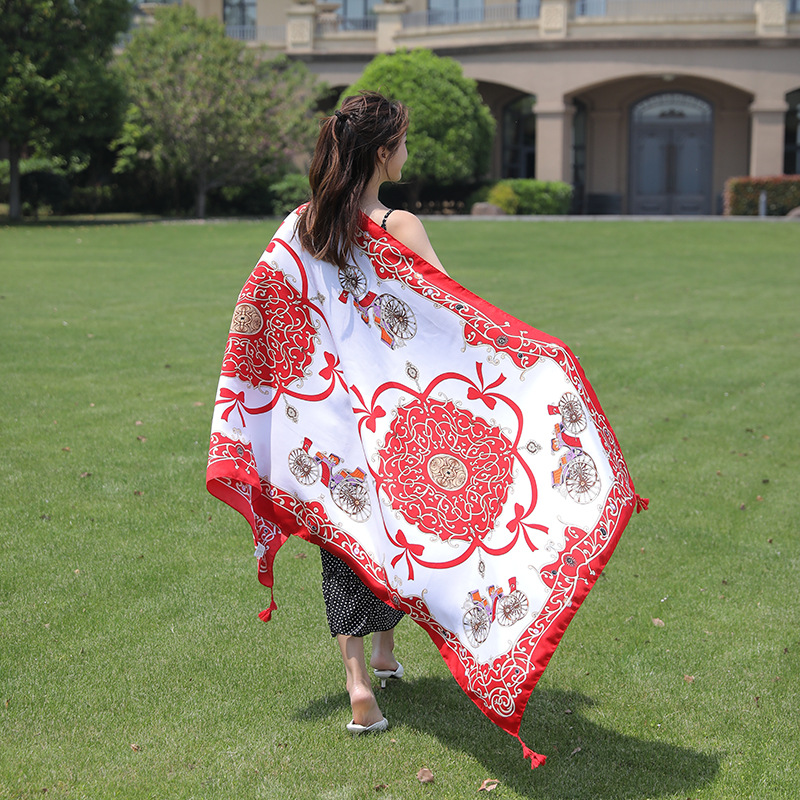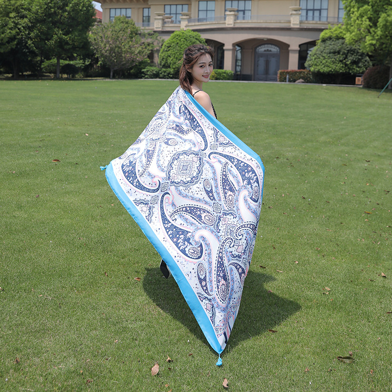 여름면과 린넨 에스닉 스타일 여행 실크 스카프 휴가 자외선 차단제 스카프 에어컨 대형 숄 여성용 해변 비치 타올
