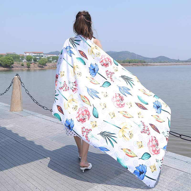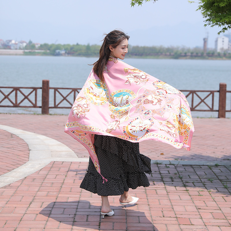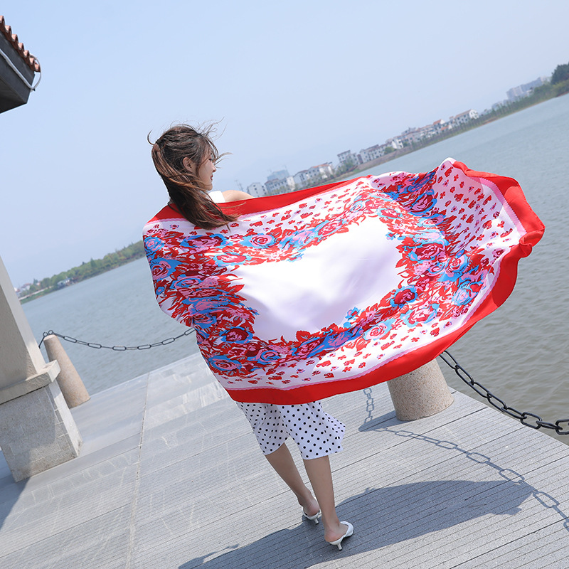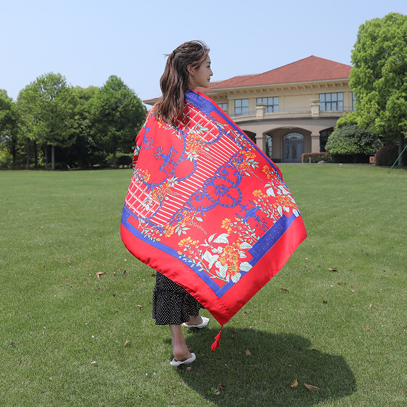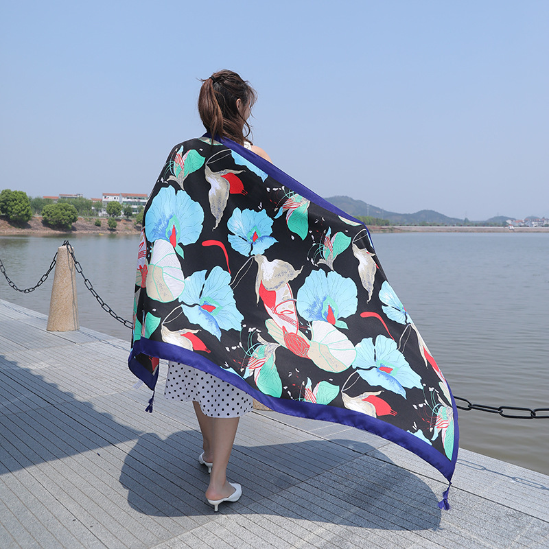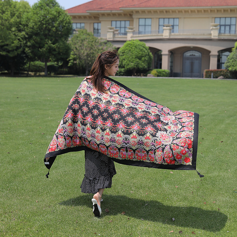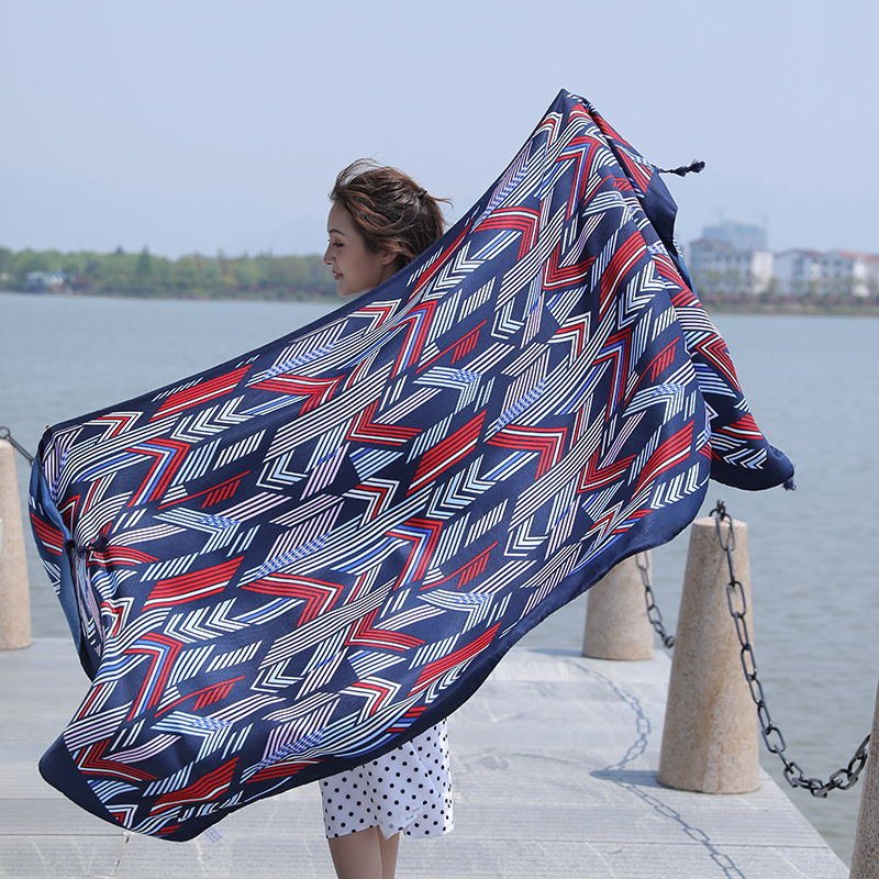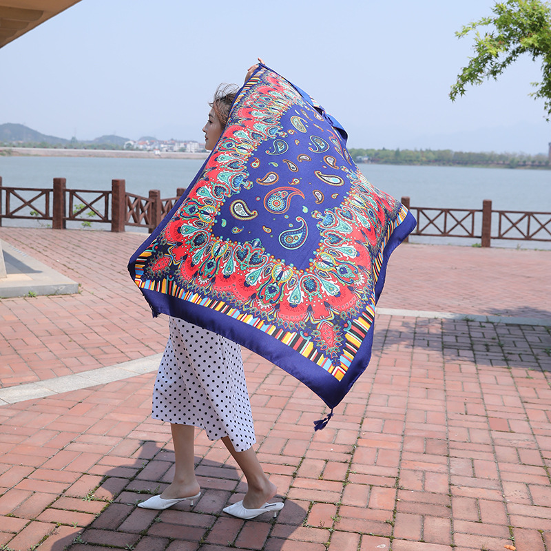 여름면과 린넨 에스닉 스타일 여행 실크 스카프 휴가 자외선 차단제 스카프 에어컨 대형 숄 여성용 해변 비치 타올