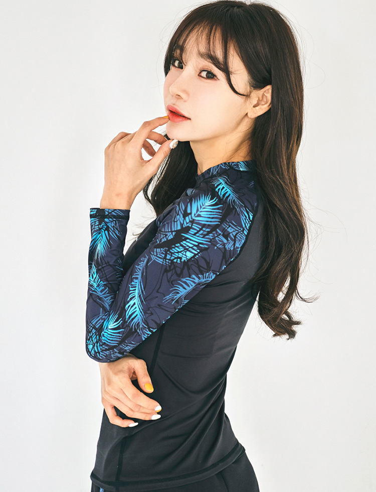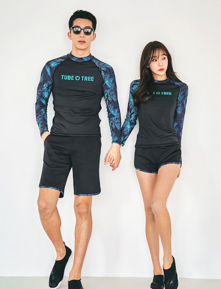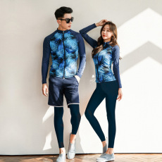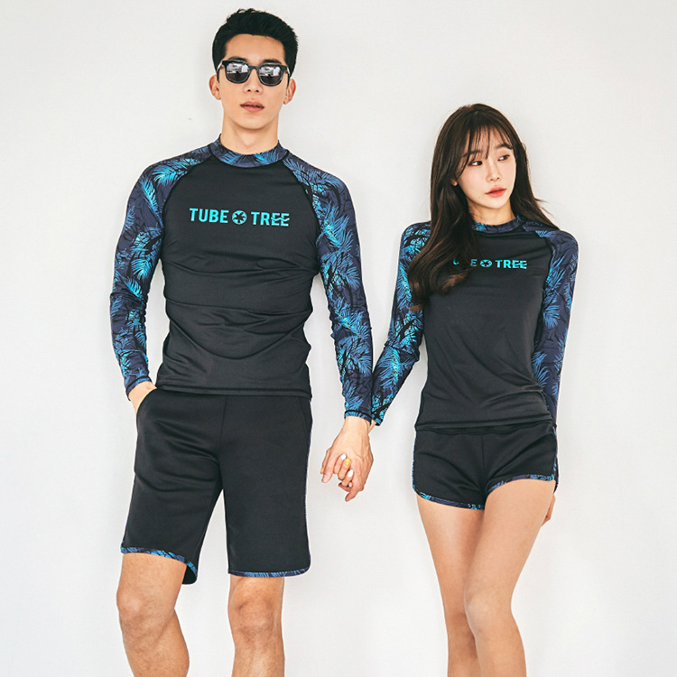 공장 직접 새로운 한국 커플 긴팔 수영복 복서 반바지 인쇄 슬림 핏 슬리밍 다이빙 세트 수영복