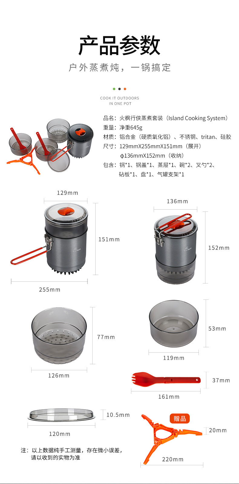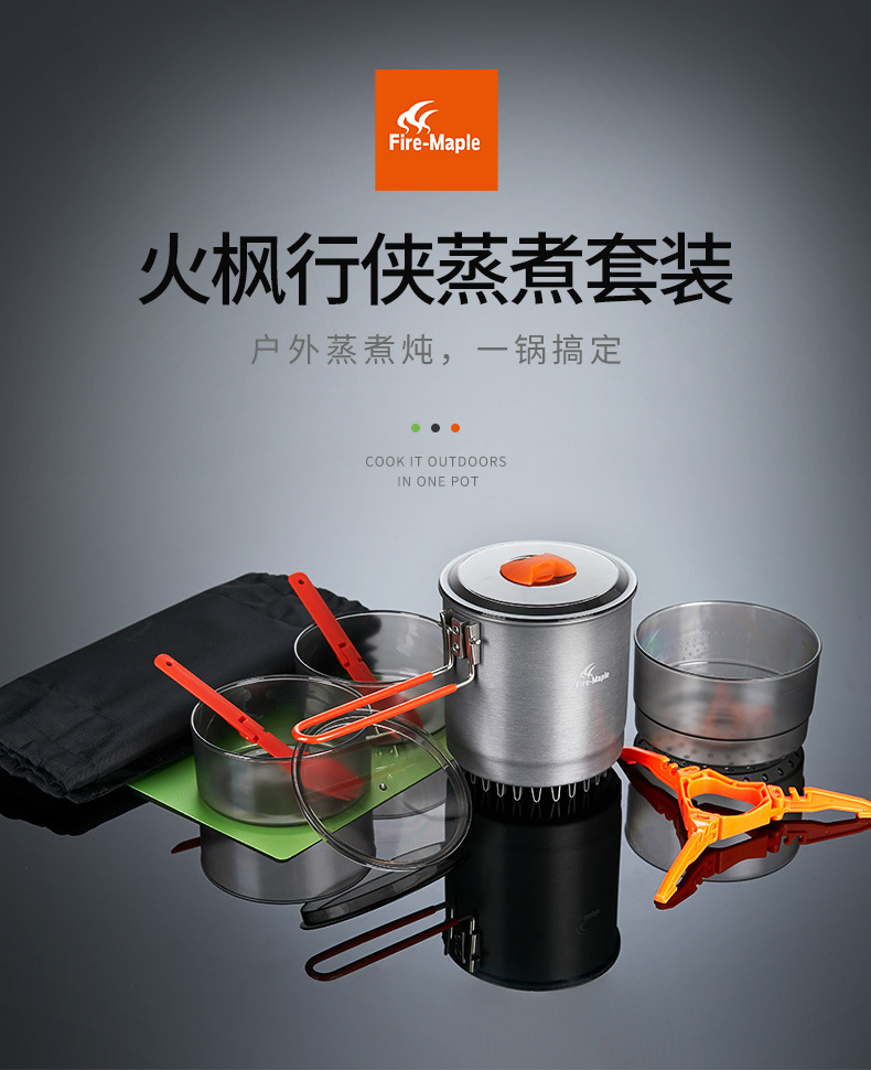 Huofeng Xingxia 요리 세트 열 수집 냄비 찜 접시 야외 하이킹 휴대용 스토브 조리기구 세트 작은 그릇스토어 가기