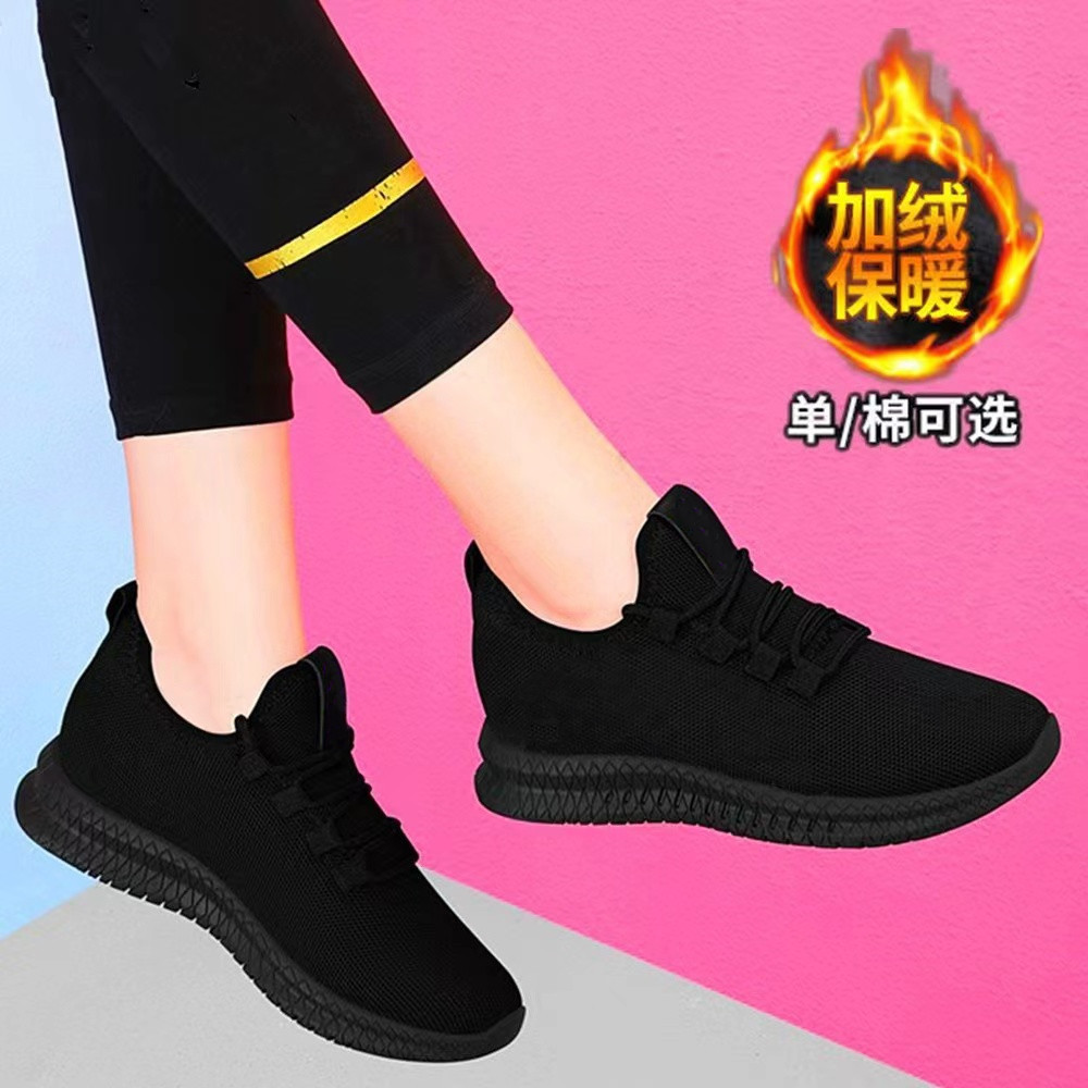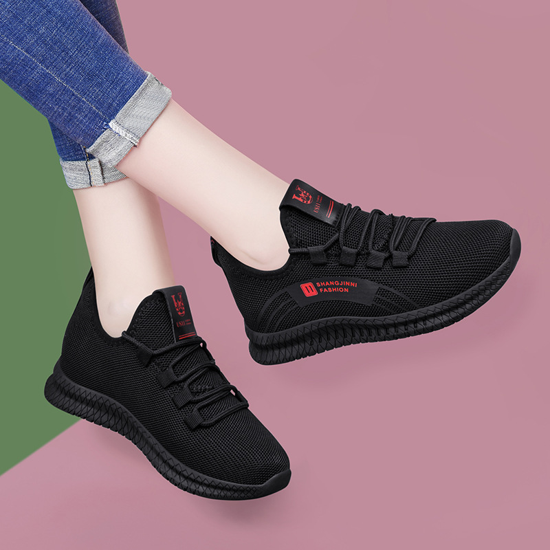 2025 여름 새로운 다목적 캐주얼 여성 신발 러닝 스니커즈 부드러운 단독 올 블랙 작업 블랙 엄마 신발 댄스
