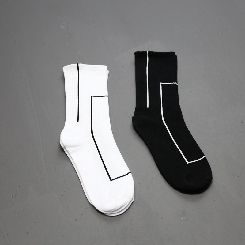 남녀 학생용 라인 양말 연인을위한 한국식 얼짱 미드 튜브 양말 패션 브랜드 긴 튜브 면 양말스토어 가기
