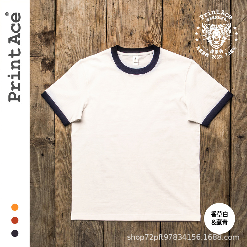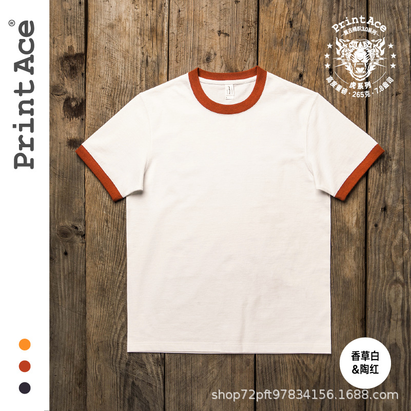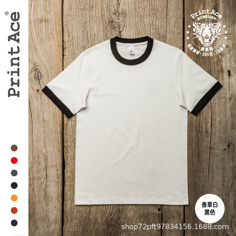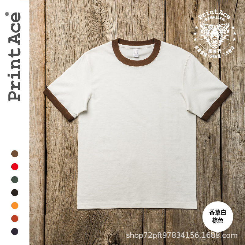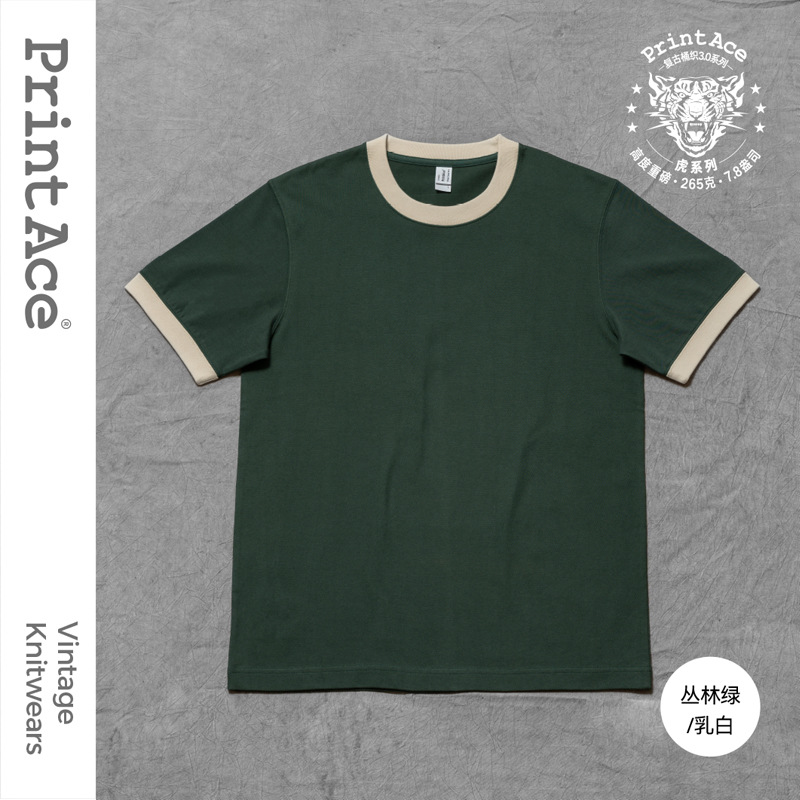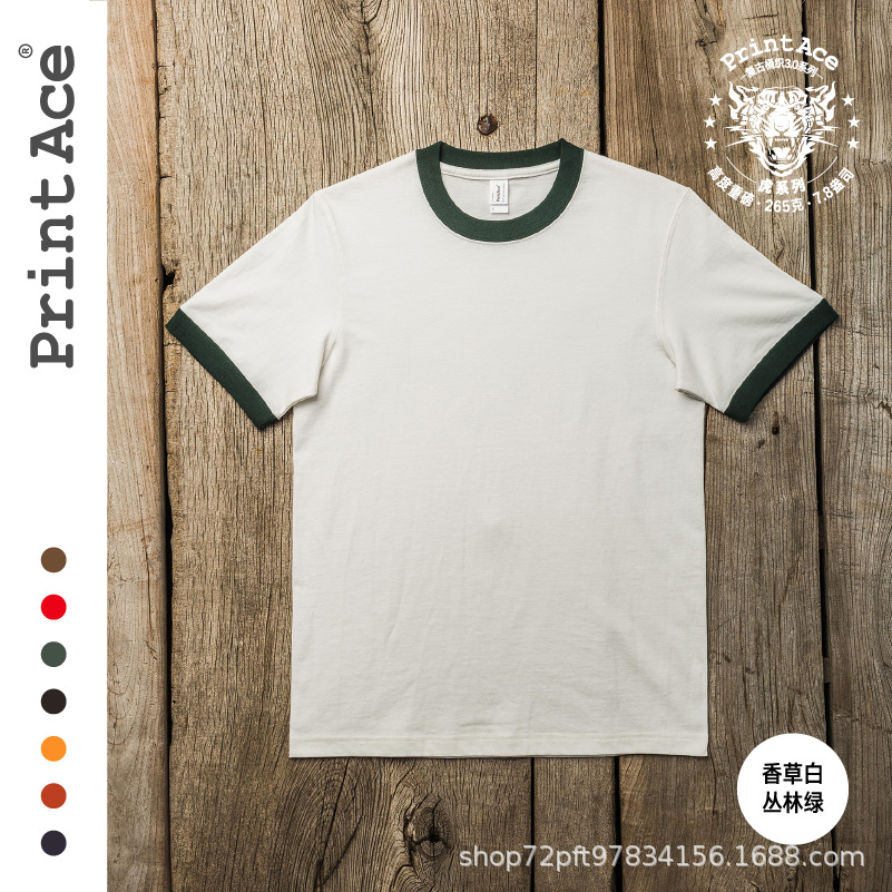 PrintAce 빈티지 카키 코튼 배럴 짠 슈퍼 무거운 복고풍 RINGER T 남자의 반팔 6244스토어 가기