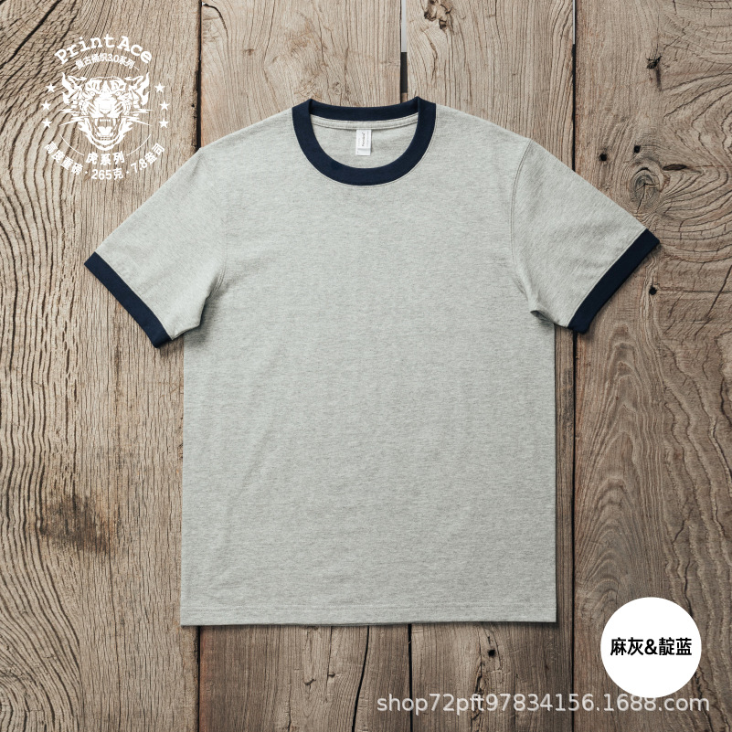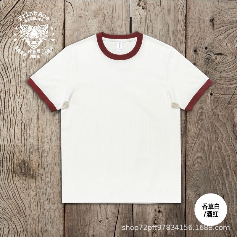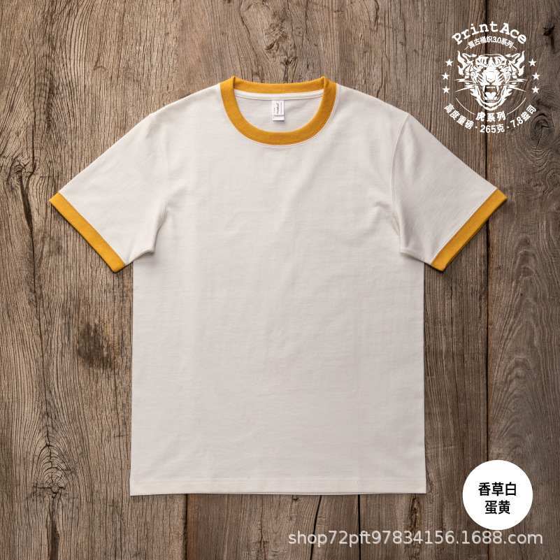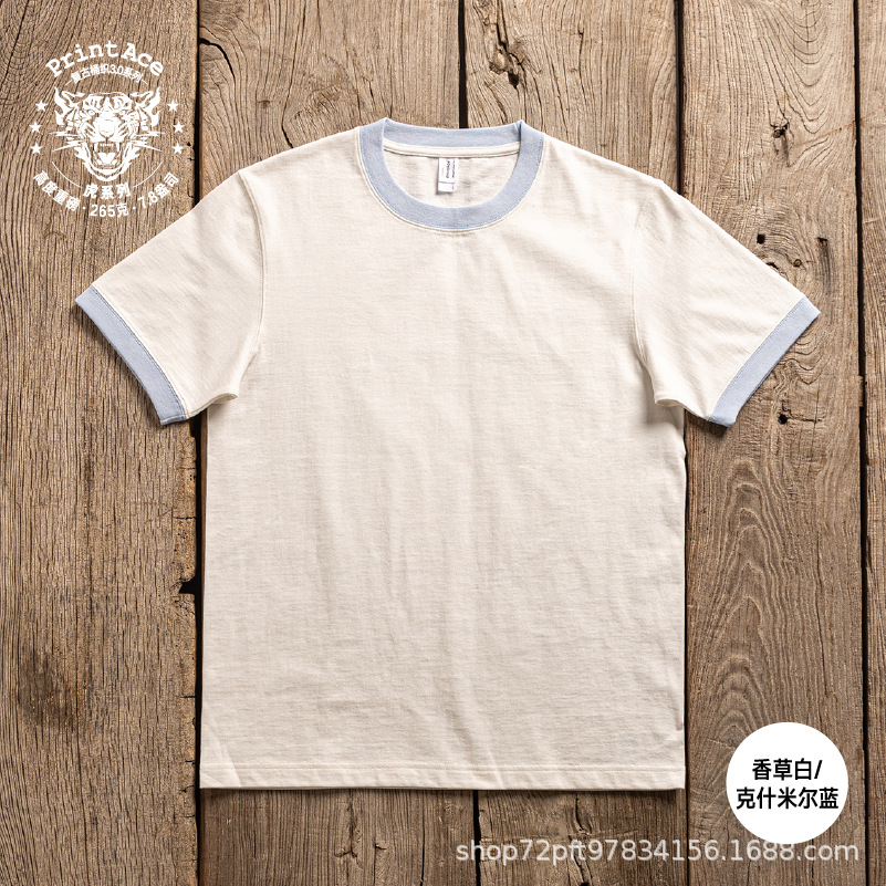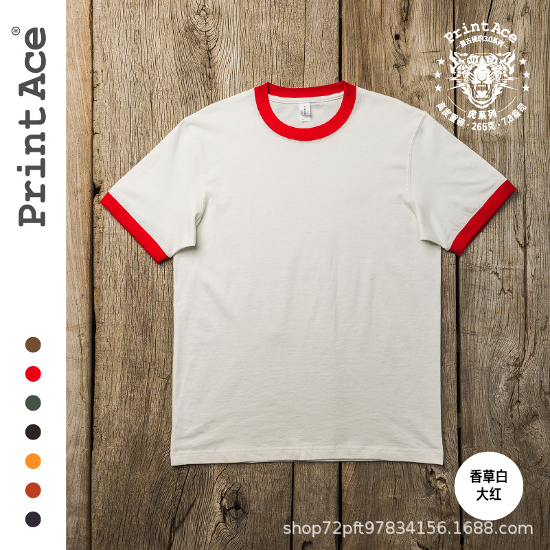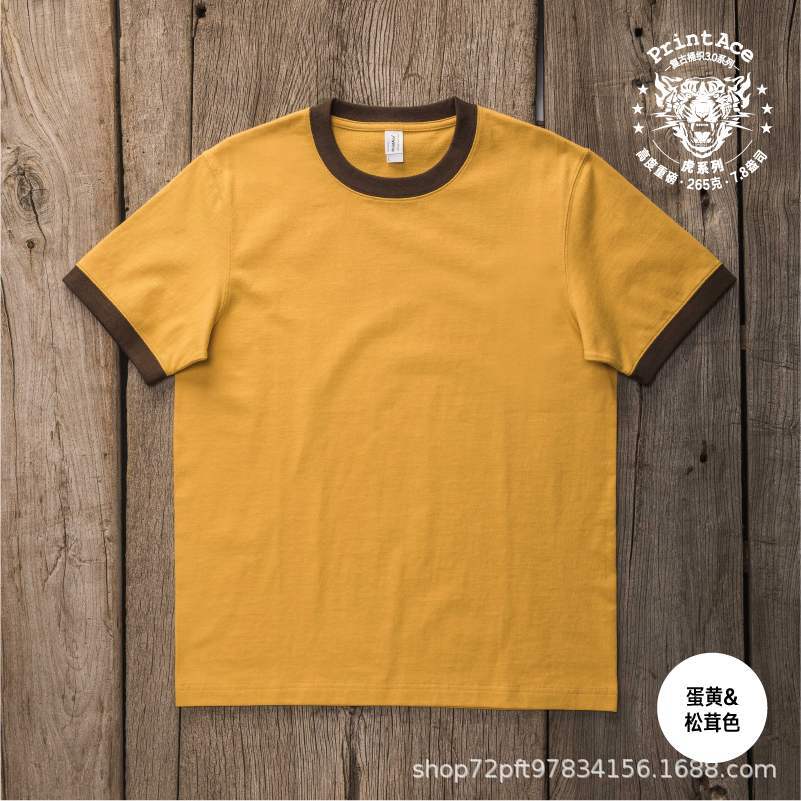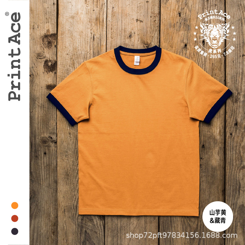 PrintAce 빈티지 카키 코튼 배럴 짠 슈퍼 무거운 복고풍 RINGER T 남자의 반팔 6244스토어 가기