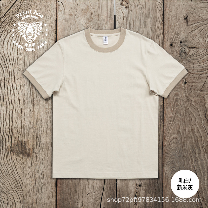 PrintAce 빈티지 카키 코튼 배럴 짠 슈퍼 무거운 복고풍 RINGER T 남자의 반팔 6244