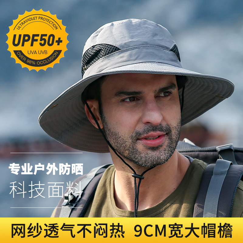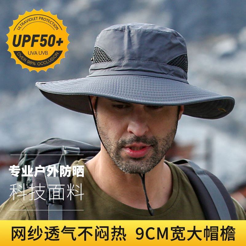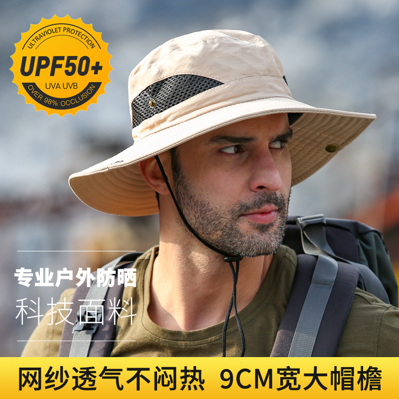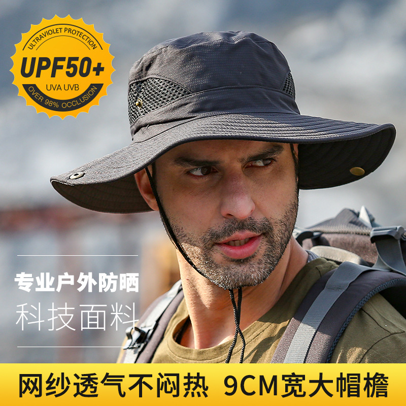 유럽과 미국 남성 여름 차양 어부 모자 자외선 차단 큰 챙 모자 야외 낚시 모자 방수 속건