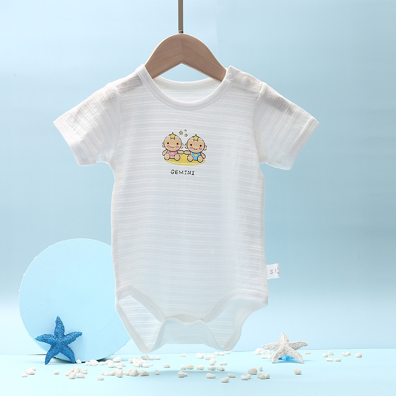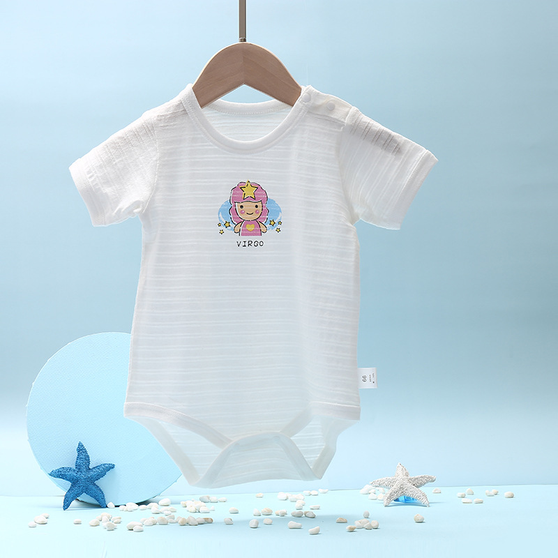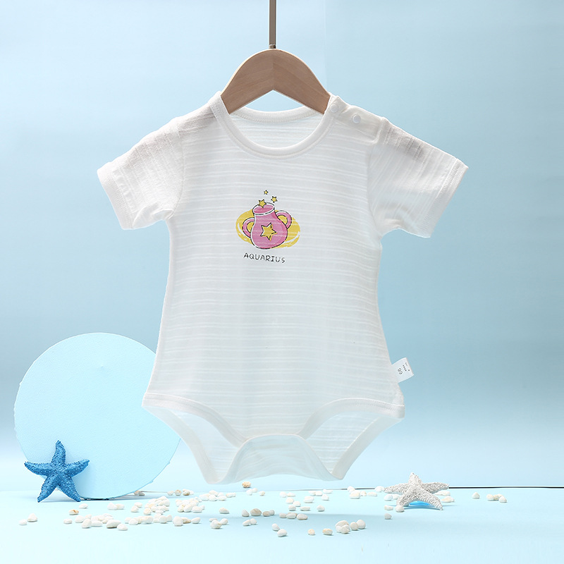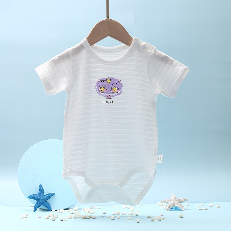 2020夏季新款十二星座短袖哈衣,清凉竹节棉面料,臀部加宽版型更适合宝宝体型,穿着,贴身柔软,图片实拍 视频自然光拍摄。尺码 66 73 80 90 对应身高 胖宝宝或者喜欢宽松的 可以选大一码