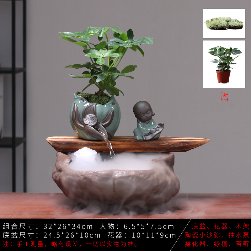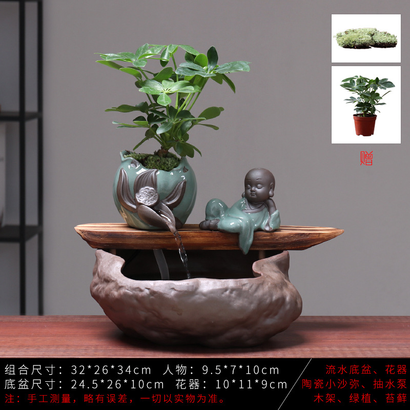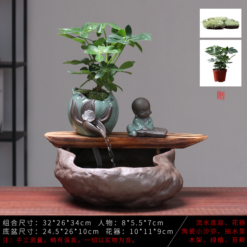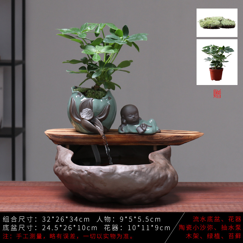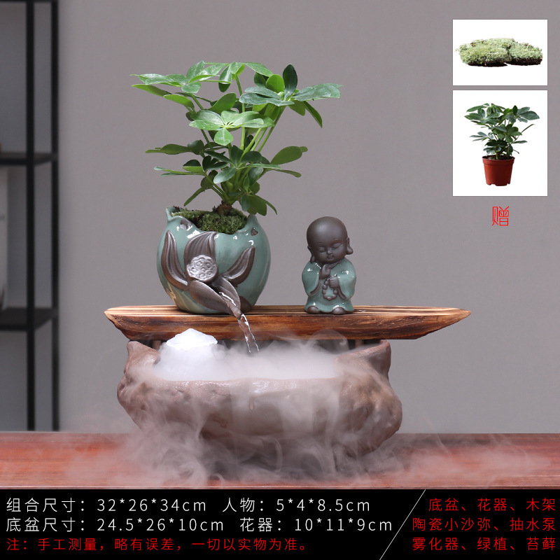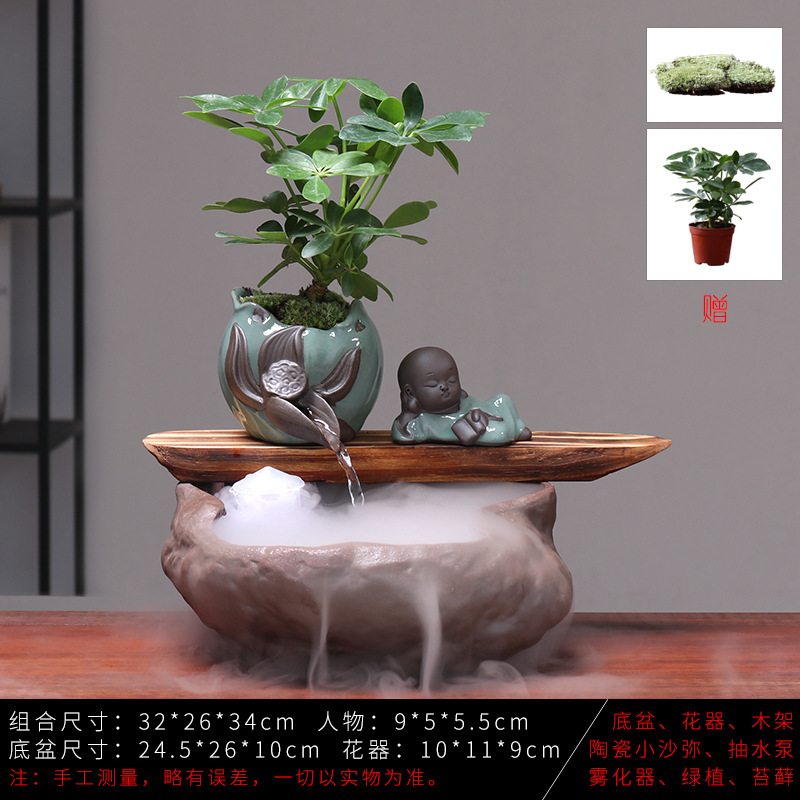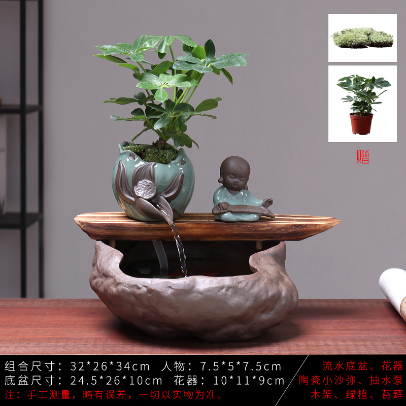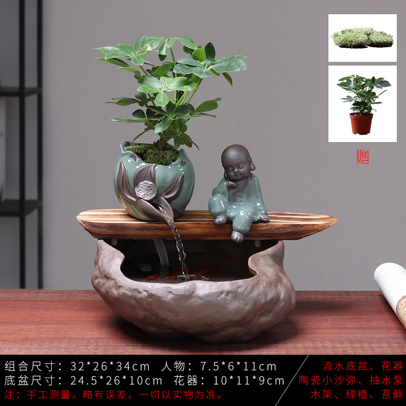 세라믹 물고기 어항 풍수 휠 행운을 부르는 장식품 거실 사무실 책상용 가습기 세라믹 풍수 휠 선(禪) 스타일