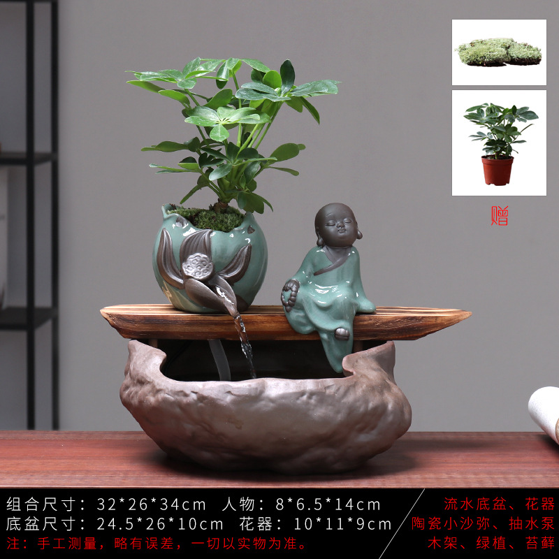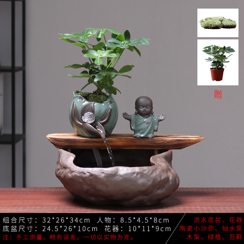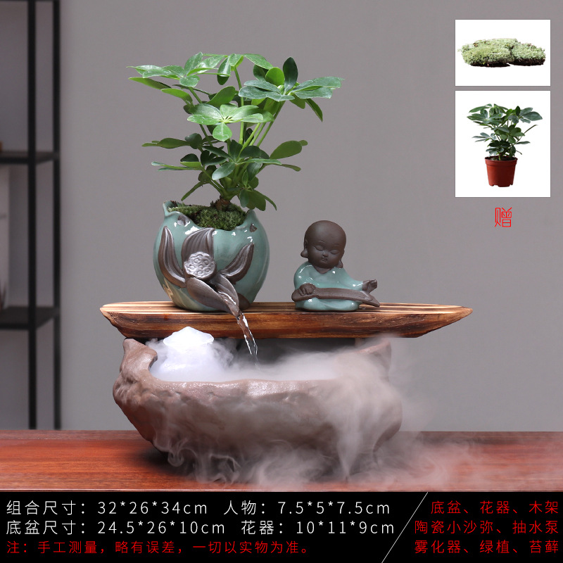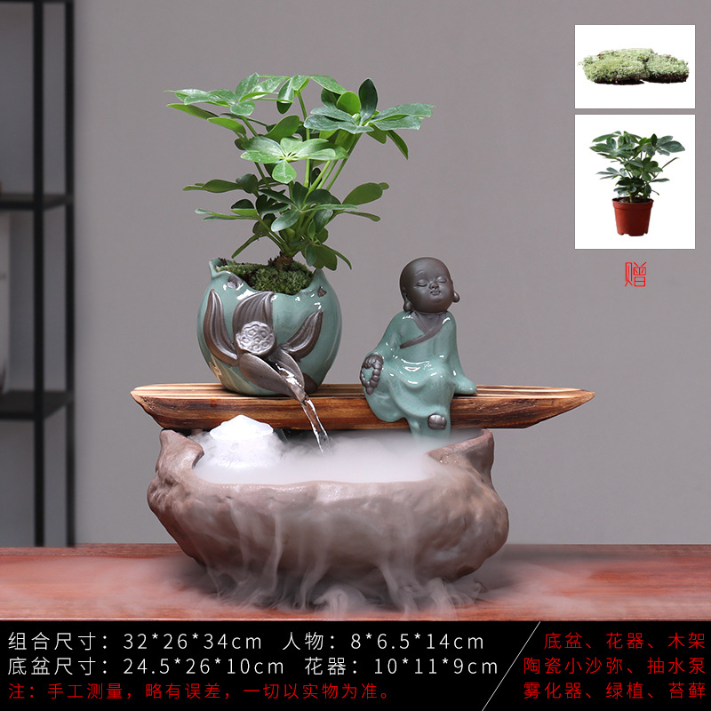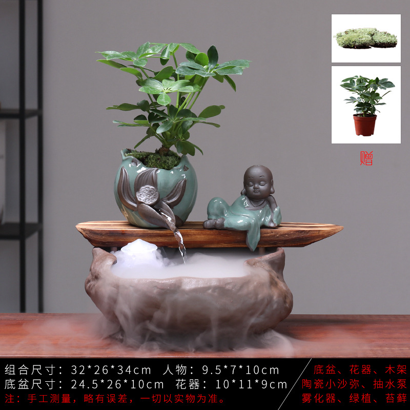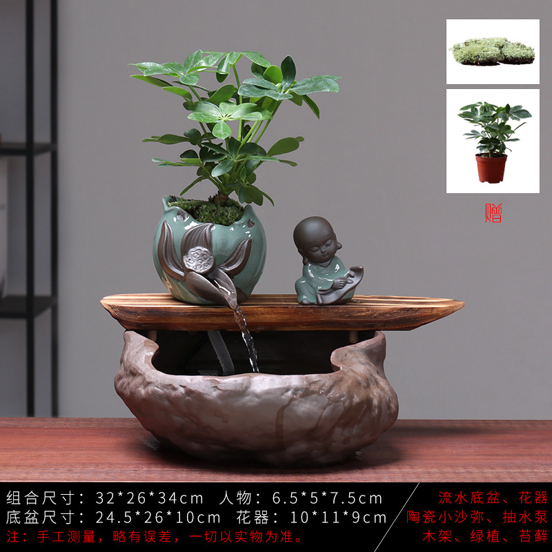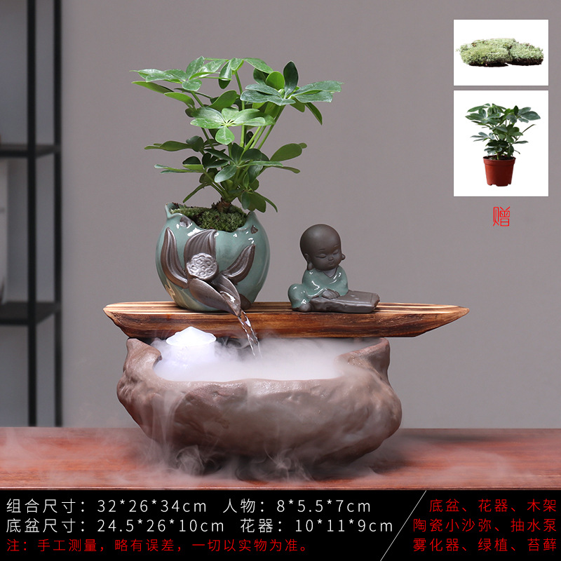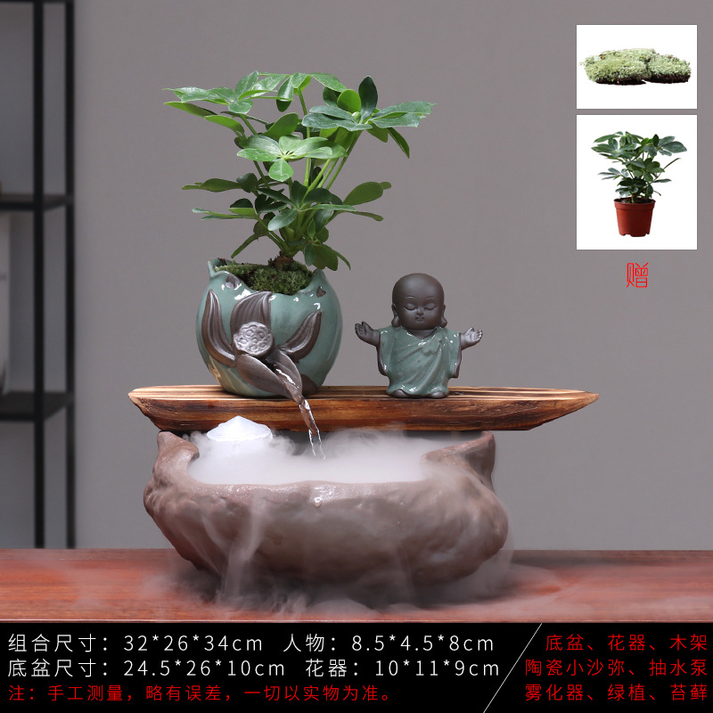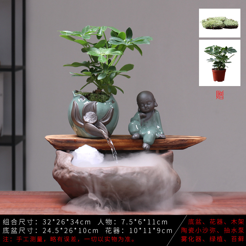 세라믹 물고기 어항 풍수 휠 행운을 부르는 장식품 거실 사무실 책상용 가습기 세라믹 풍수 휠 선(禪) 스타일
