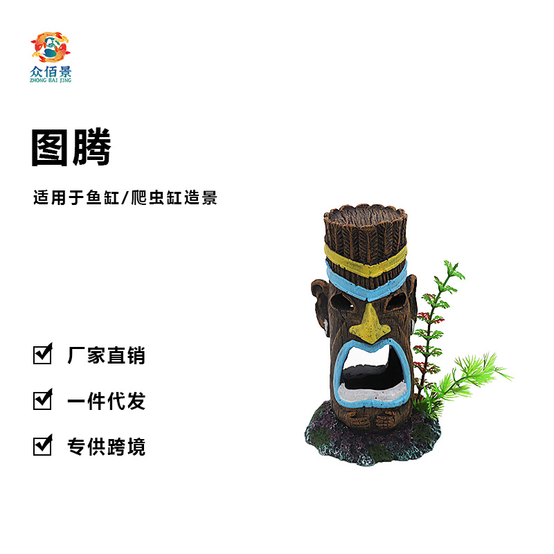 수족관 장식품, 모조 흙으로 만든 토템 수초 장식, 수지 공예품, 물고기들이 놀고 다니는 장면스토어 가기