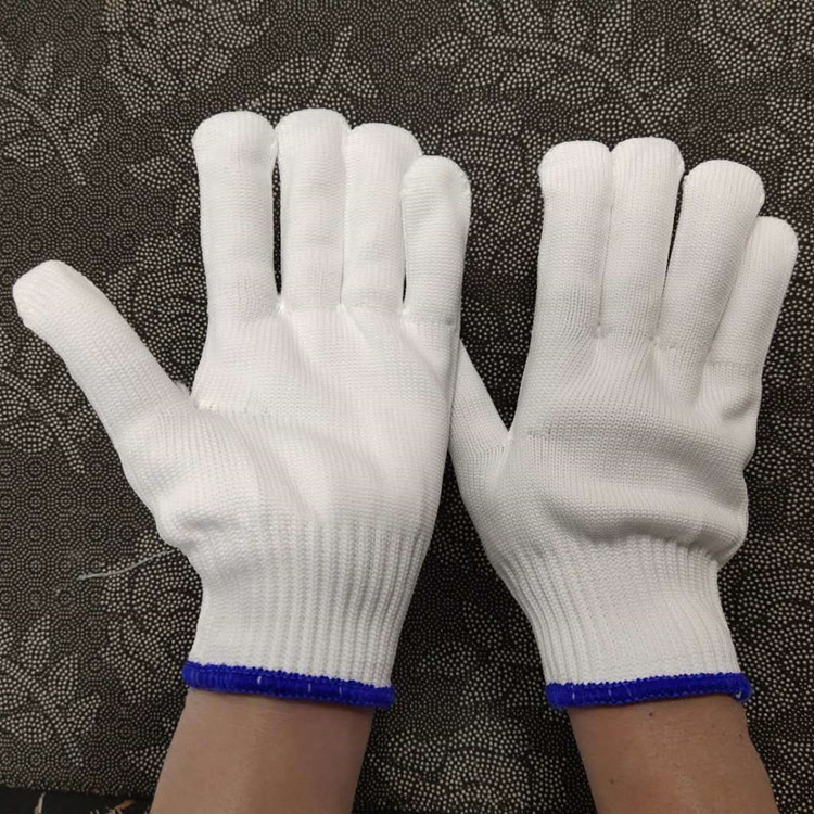 도매 두꺼운 내마모성 700g 나일론 장갑 공장 작업장 손 보호 장갑 블루 에지 화이트 장갑