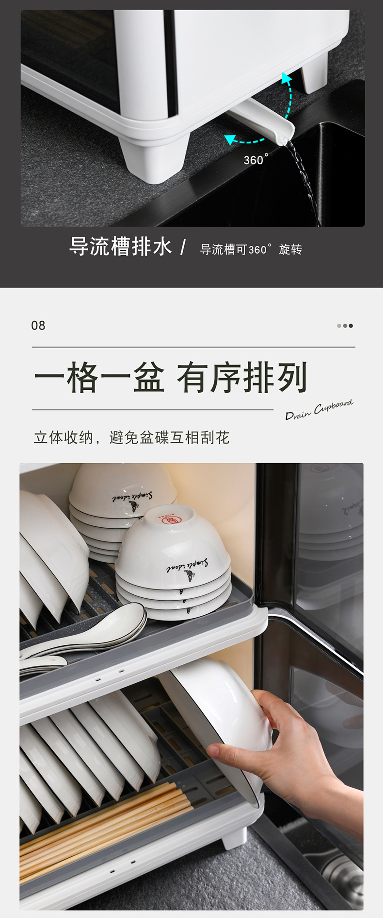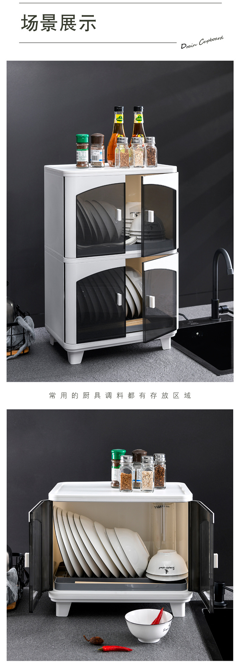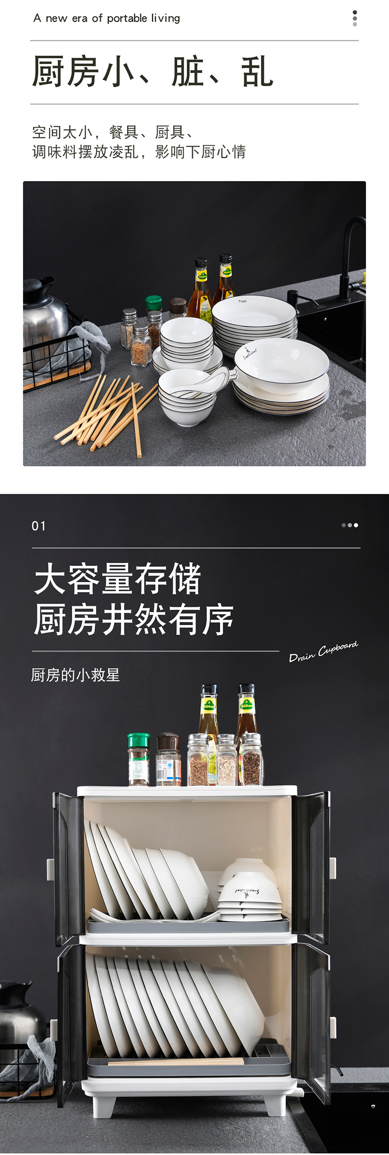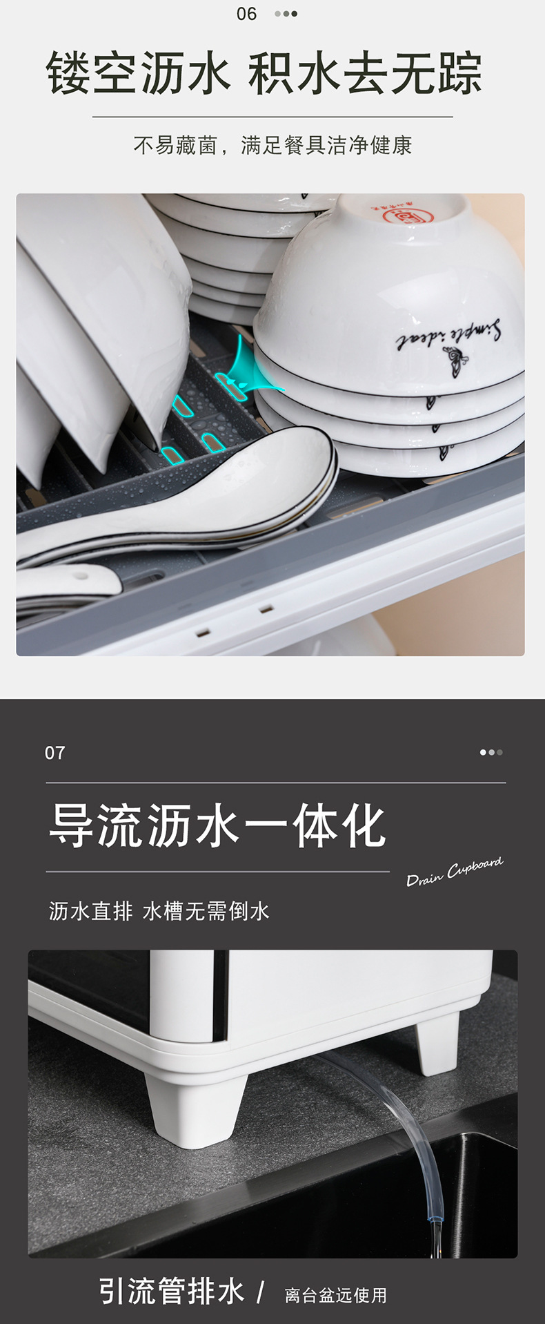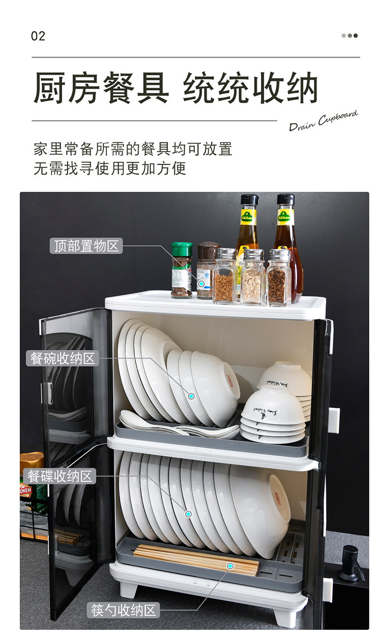 공장 직접 도매 플라스틱 방진 배수 랙 접시 접시 그릇 젓가락 식기 보관함 가정용 주방 수납 캐비닛