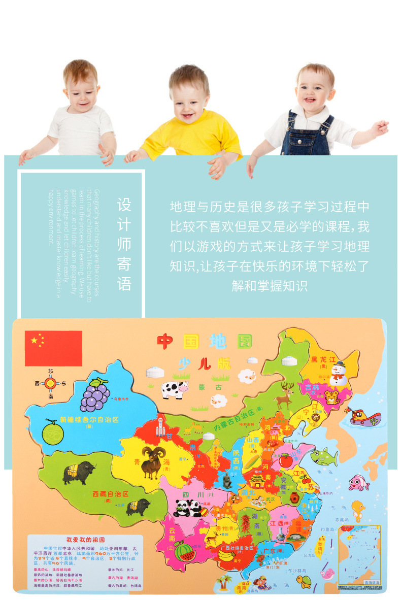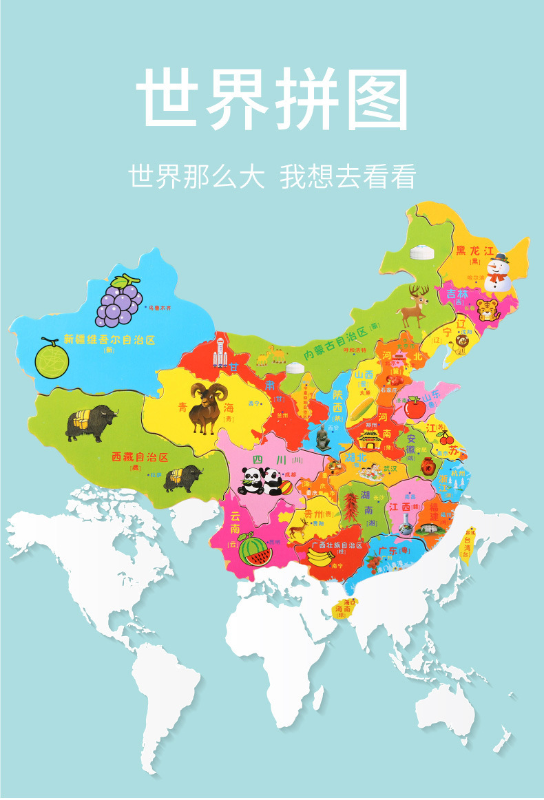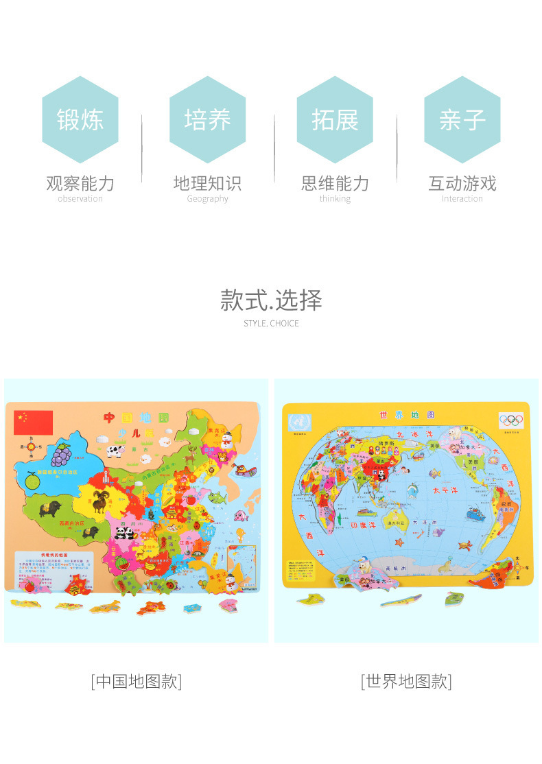 나무 재미 중국 세계지도 퍼즐 유아와 어린이 조기 교육 계몽 지리 학습 인지 나무 장난감스토어 가기