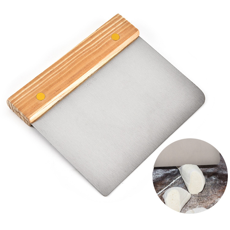 공장 직공급 스테인레스 스크레이퍼 다목적 사각 나무 손잡이 밥 롤 피자 칼 밀가루 반죽 칼스토어 가기